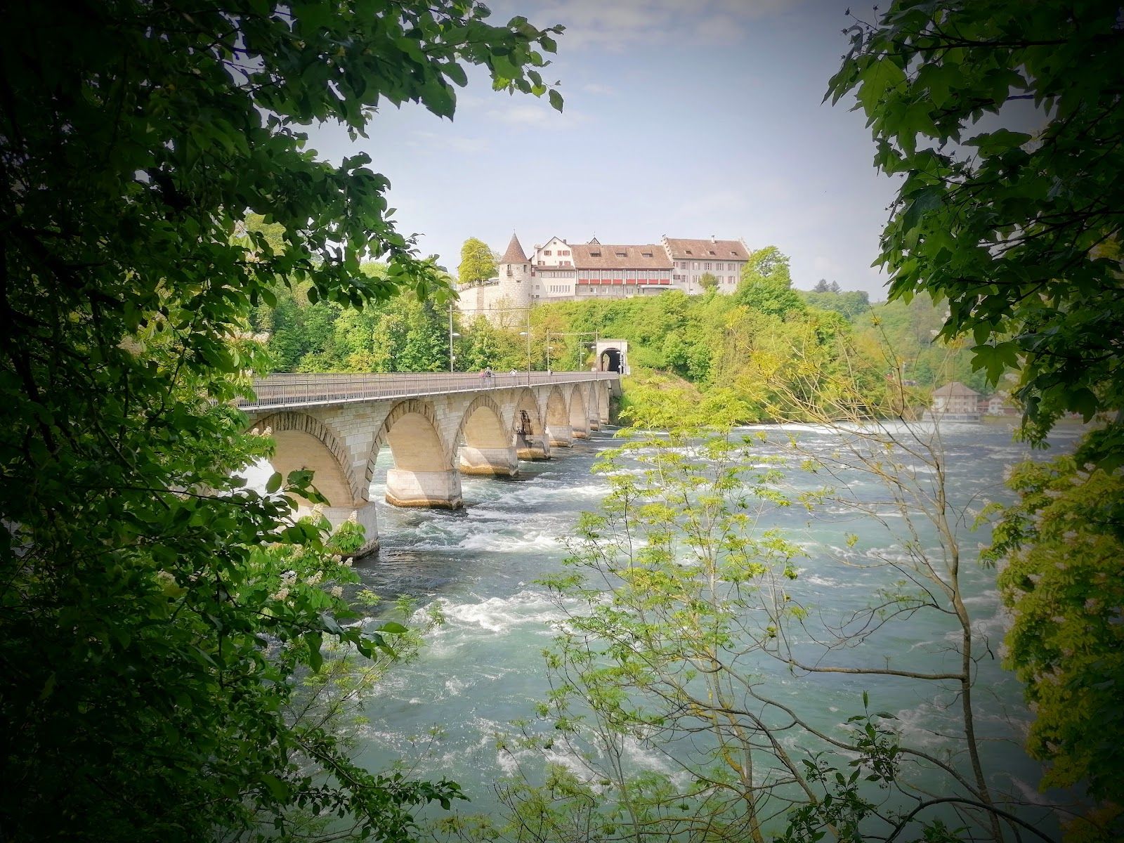 The walk takes approximately 1 to 1.5 hours, depending on your pace and how often you stop to enjoy the views. Once at the falls, you can explore the free viewpoints on the northern bank or cross the bridge to Schloss Laufen for closer access.