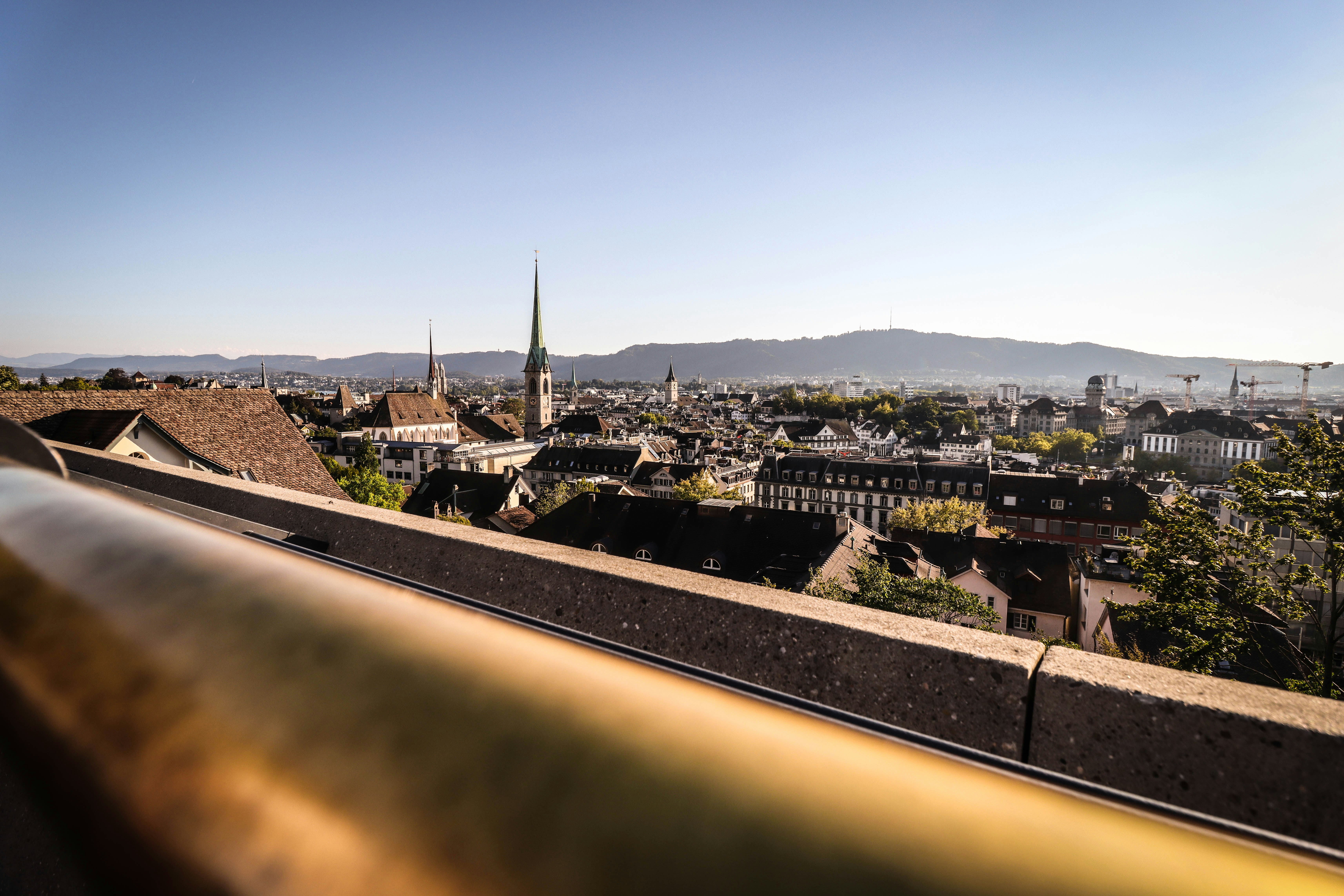 There’s also a café nearby where you can enjoy a coffee or snack while admiring the cityscape. On clear days, the sight of Zurich’s rooftops stretching out toward the shimmering lake and the majestic Alps beyond is truly unforgettable.