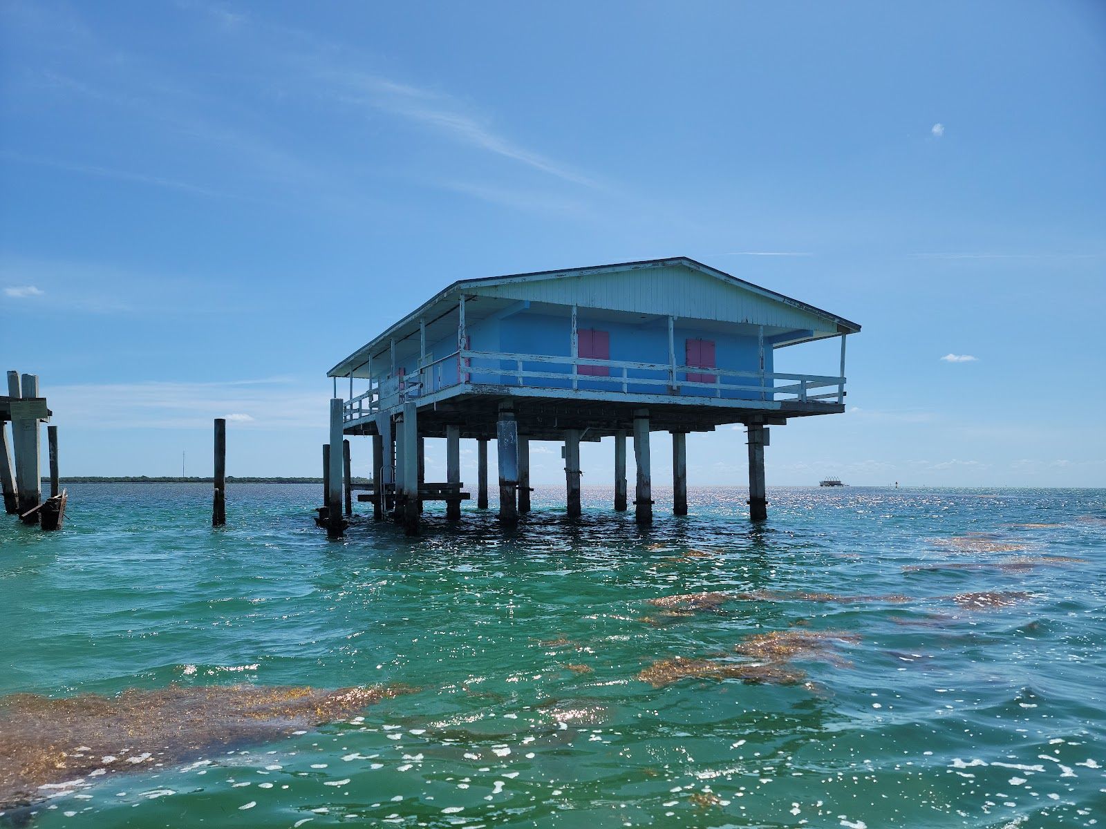 During its heyday in the 1950’s and 60’s there were about 27 houses in Stiltsville, the Shangri-La and Bikini clubs were popular watering holes. A local con man, Harry Churchville, grounded a 150’ yacht along Stiltsville, called it the Bikini Club, and began offering $1 memberships and free booze to bikini-clad women topped off by nude sunbathing on the upper deck of the yacht. Churchville sold illegal liquor and was known to poach lobster out of season to supply his club.