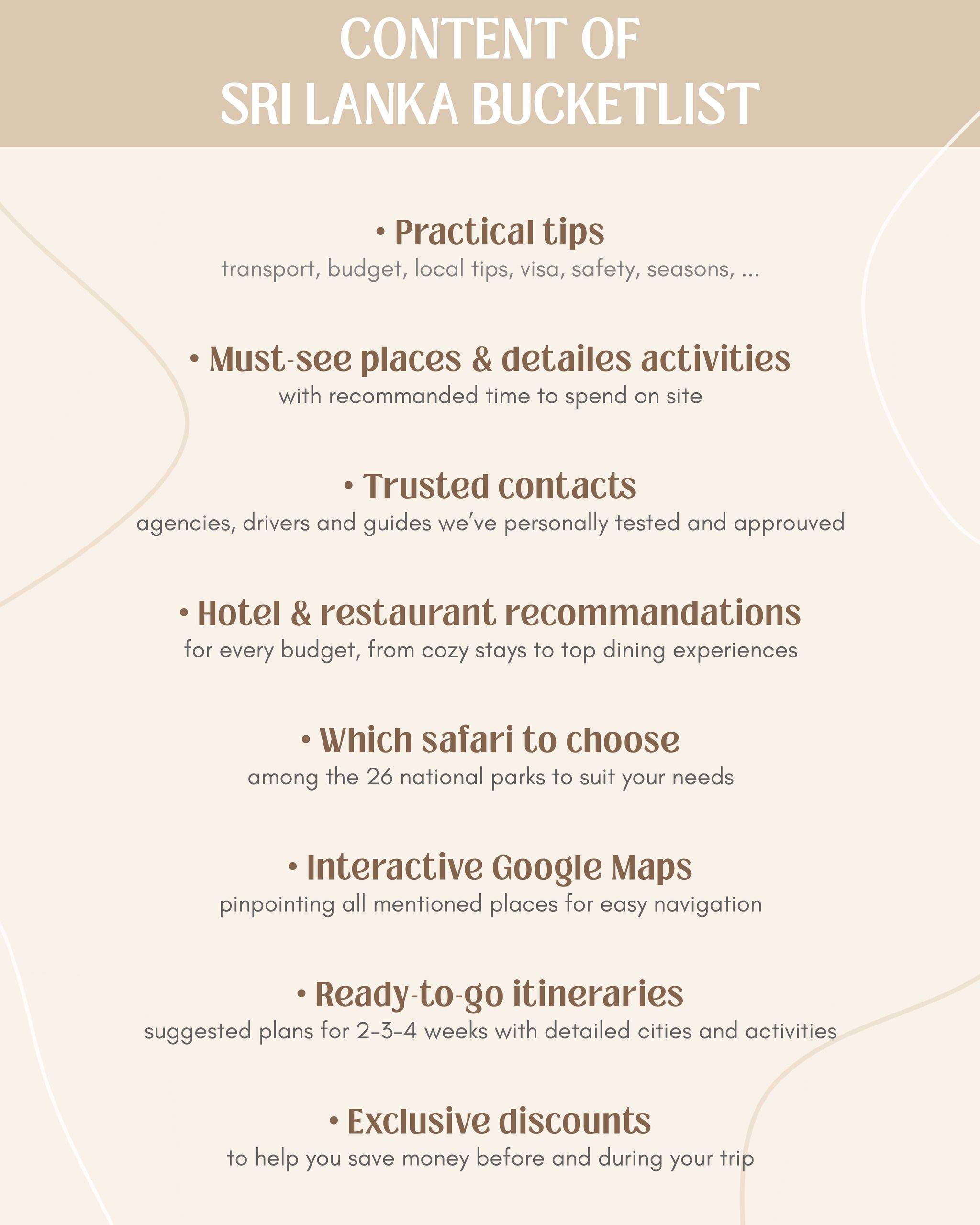 Safaris, hikes, temples, beaches, waterfalls, hidden gems and iconic highlights so you never miss the best of Sri Lanka.