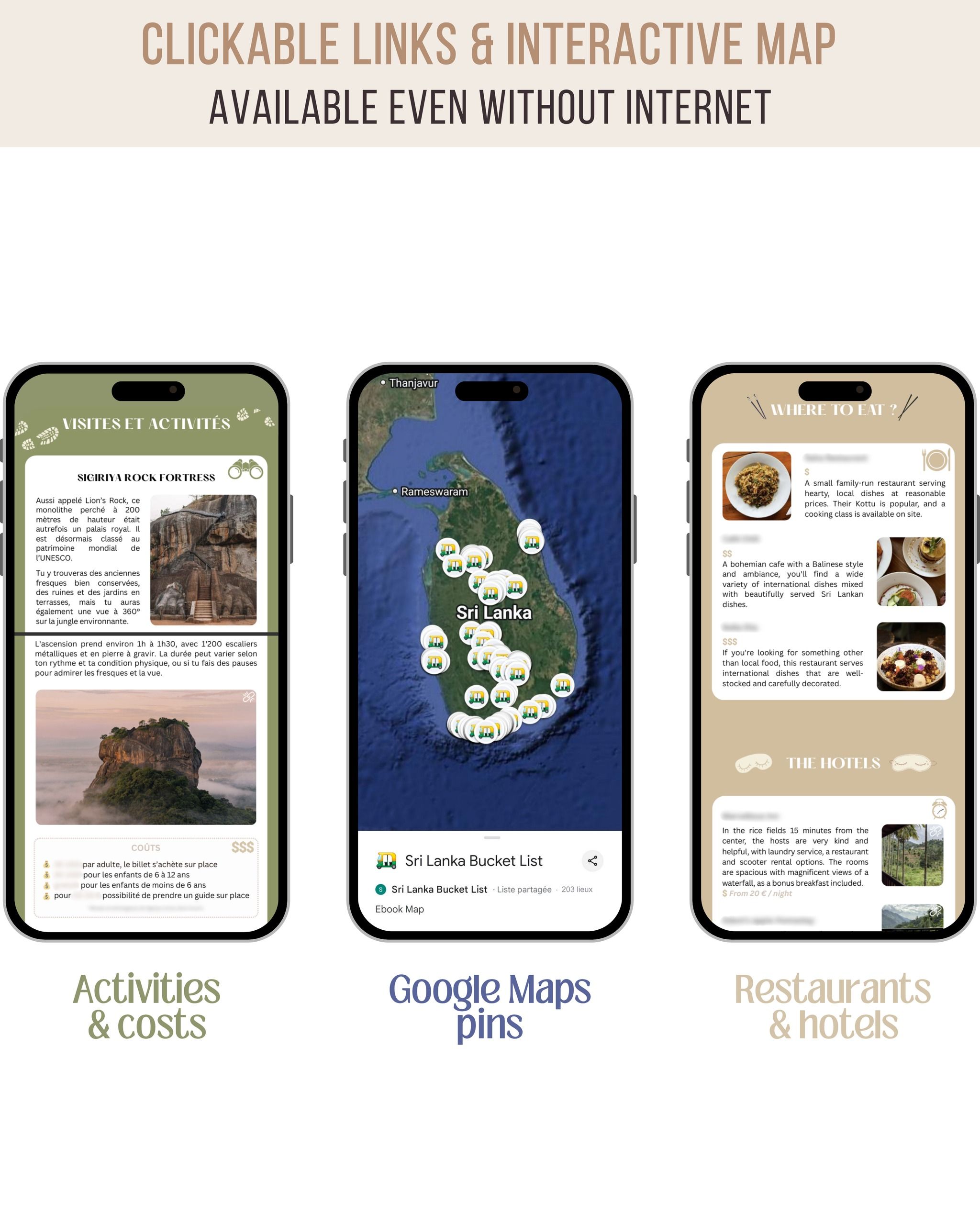 Clickable locations to use directly on your phone during your trip.