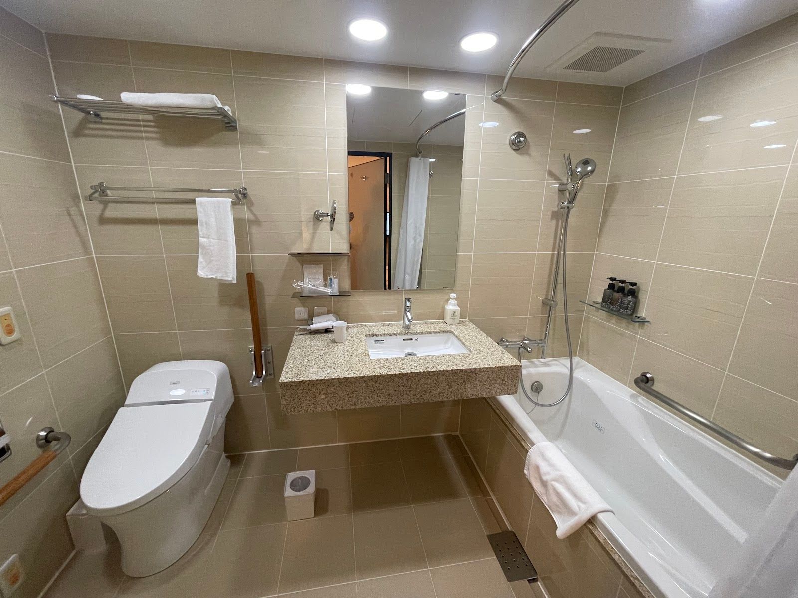 Koko Hotel Hiroshima Ekimae is worth considering because it sits just a short walk from Hiroshima Station, which makes moving around Hiroshima and accessing trains for day trips like Miyajima very easy. The closest transport is Hiroshima Station a few minutes on foot, with trams and buses also nearby, so exploring the city and region doesn’t require taxis. The area feels busy and practical with shops, restaurants and conveniences close by, and it stays active throughout the day with travellers and commuters passing through. This is a modern city hotel with straightforward rooms and essential services, which suits travellers who want convenience and efficiency without extra frills.