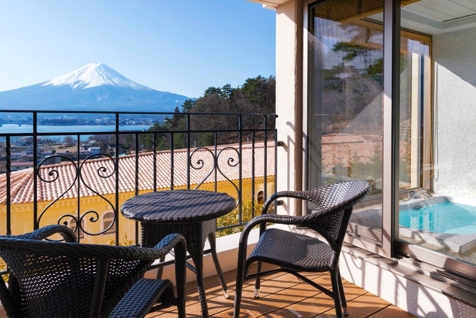 Guests often highlight the panoramic views of Mount Fuji.