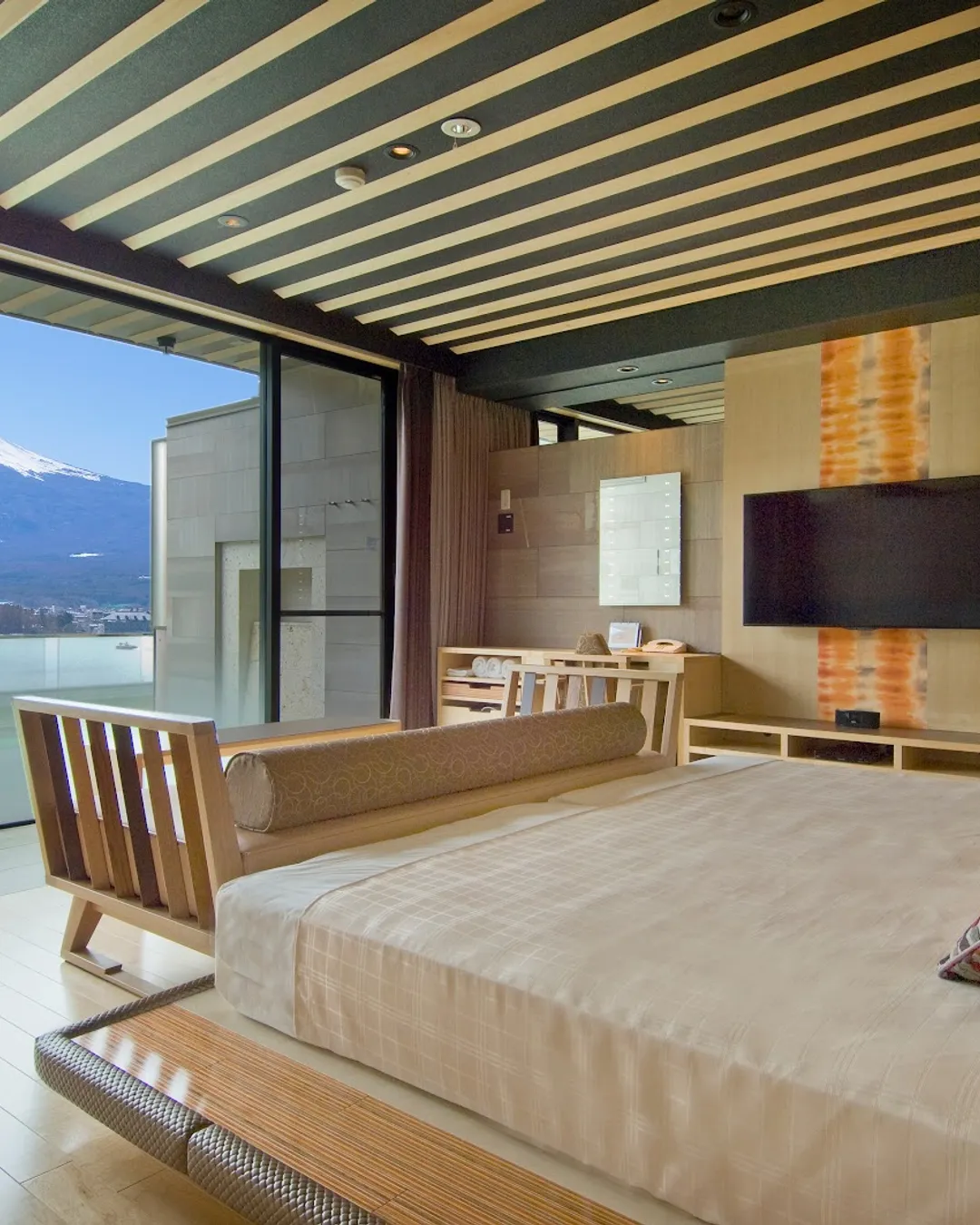 Avis : Vues et design très appréciés. Onsen et repas bien notés. Plus moderne qu’un ryokan classique.