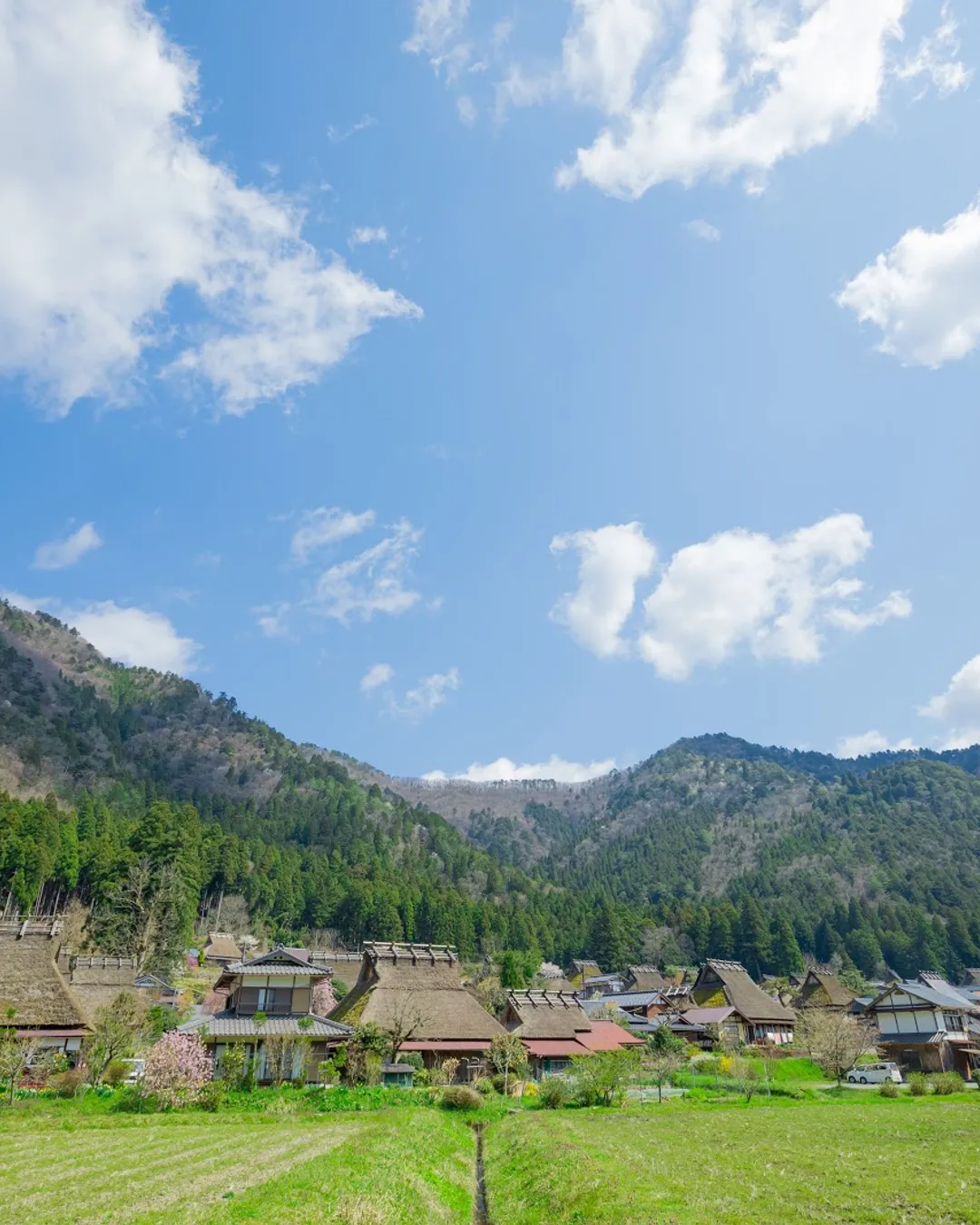 Step into a charming rural village known for its thatched-roof farmhouses (kayabuki), surrounded by rice paddies and mountains