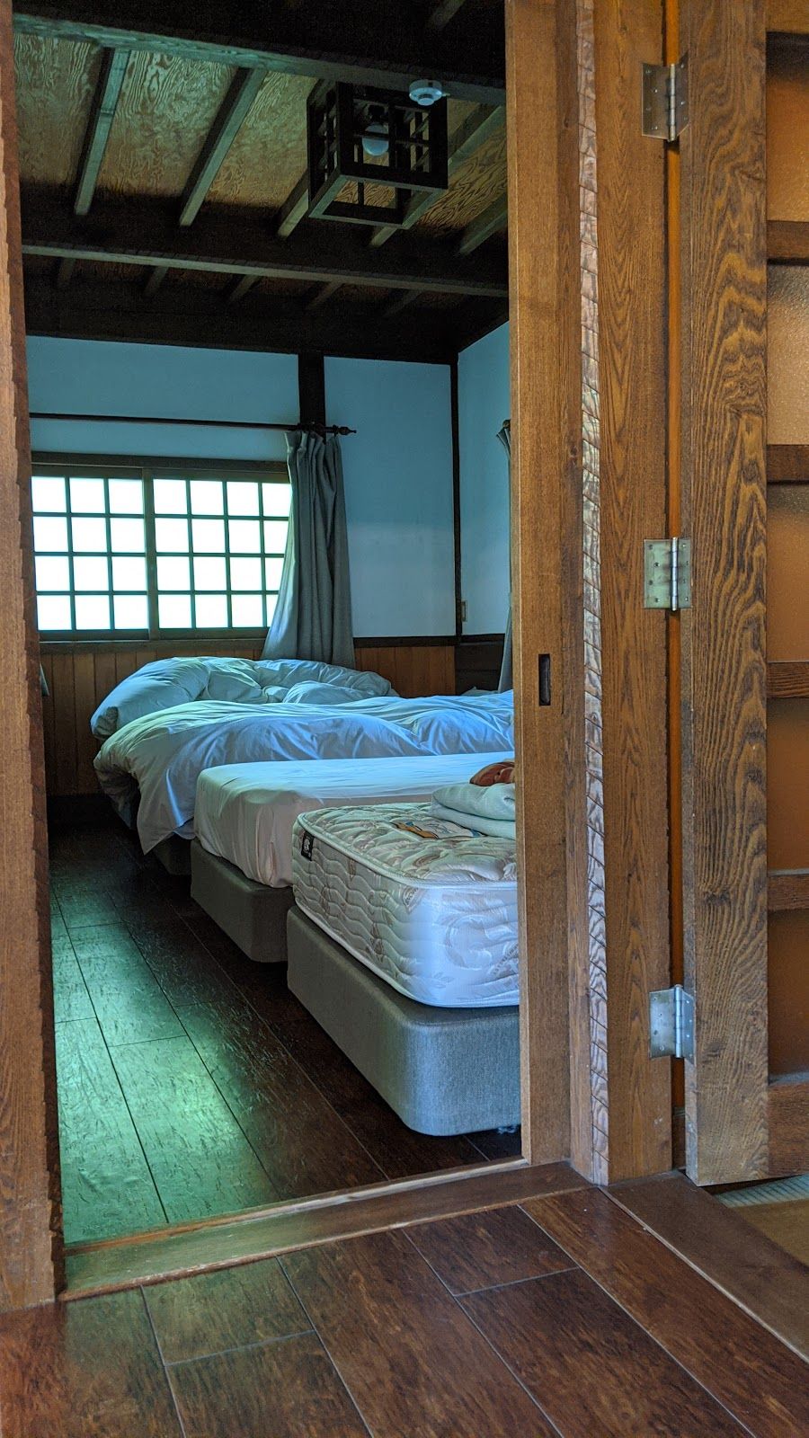 Shikitei is a good option because it is located in Fujiyoshida, which gives easy access to Mount Fuji area sights while staying outside the busiest Kawaguchiko zones. Access is mainly by car. The neighborhood feels residential and quiet, focused on local life rather than tourism, especially in the evening. This is a traditional ryokan offering tatami rooms and a calm atmosphere, suited for travelers who want a simple and local stay near Mount Fuji without large crowds.