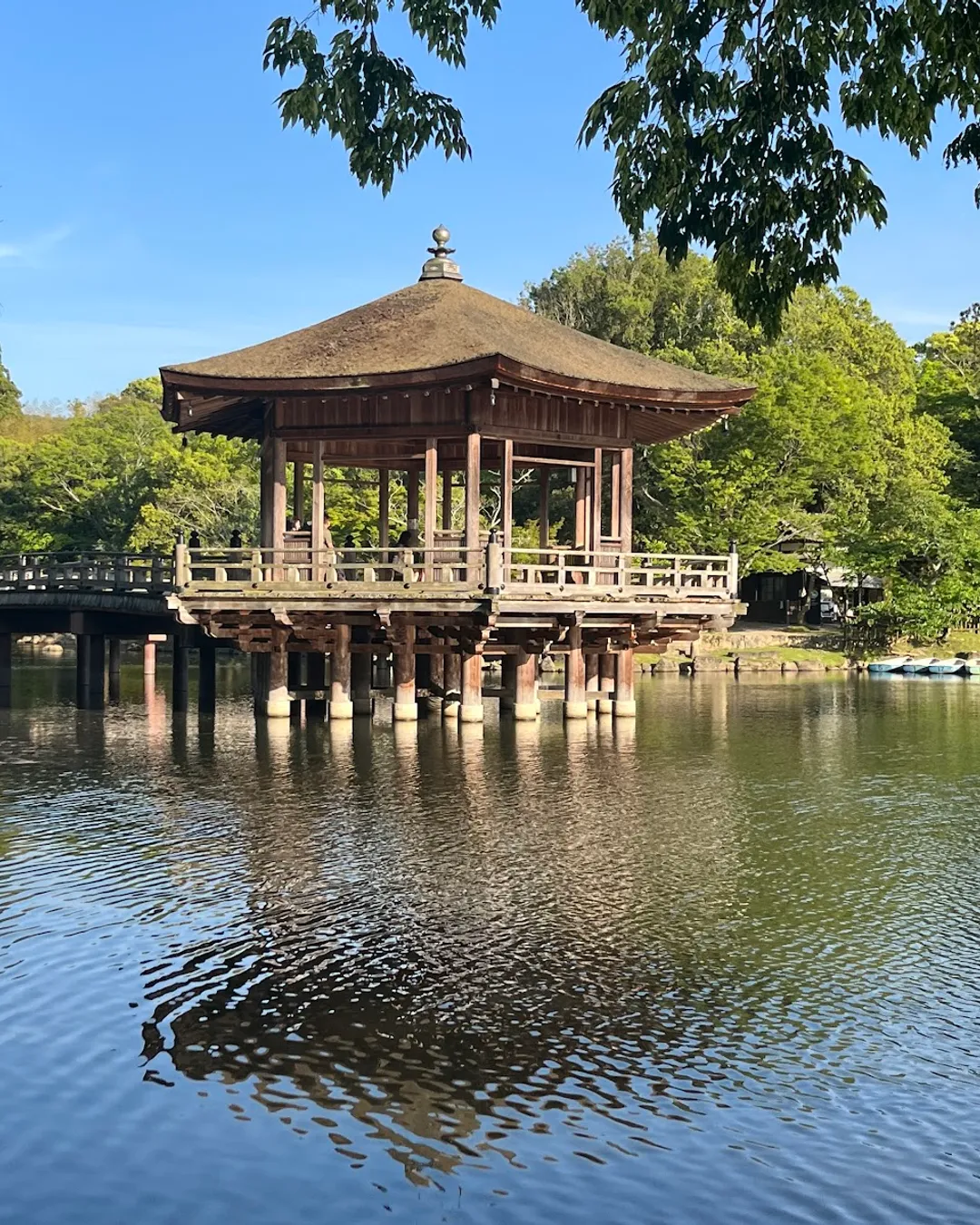 Tranquil floating temple on lake
