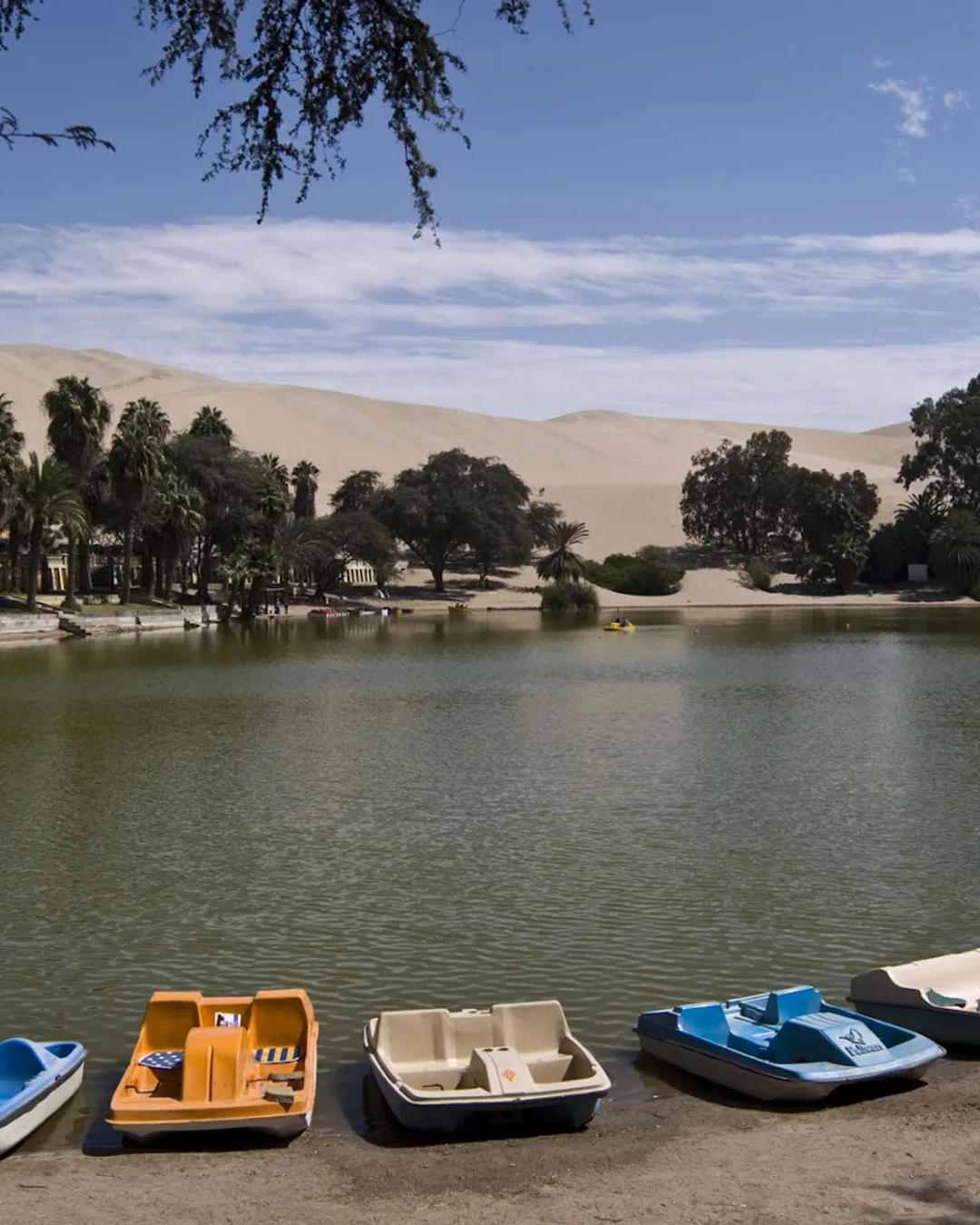 Desert oasis surrounded by dunes