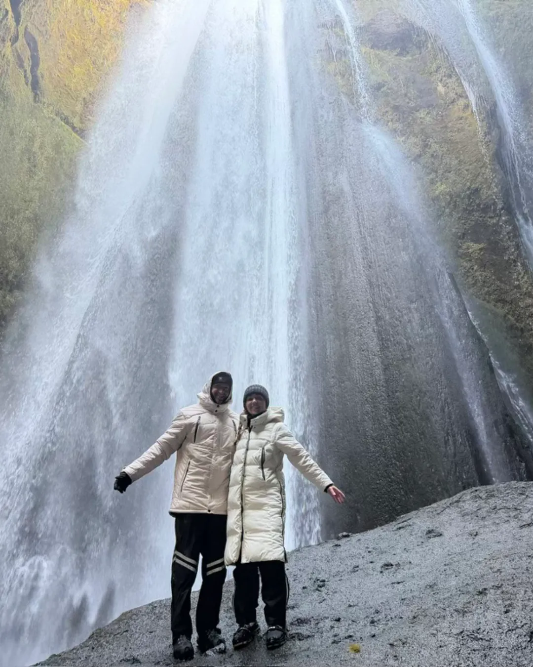 Secret waterfall in moss-covered canyon