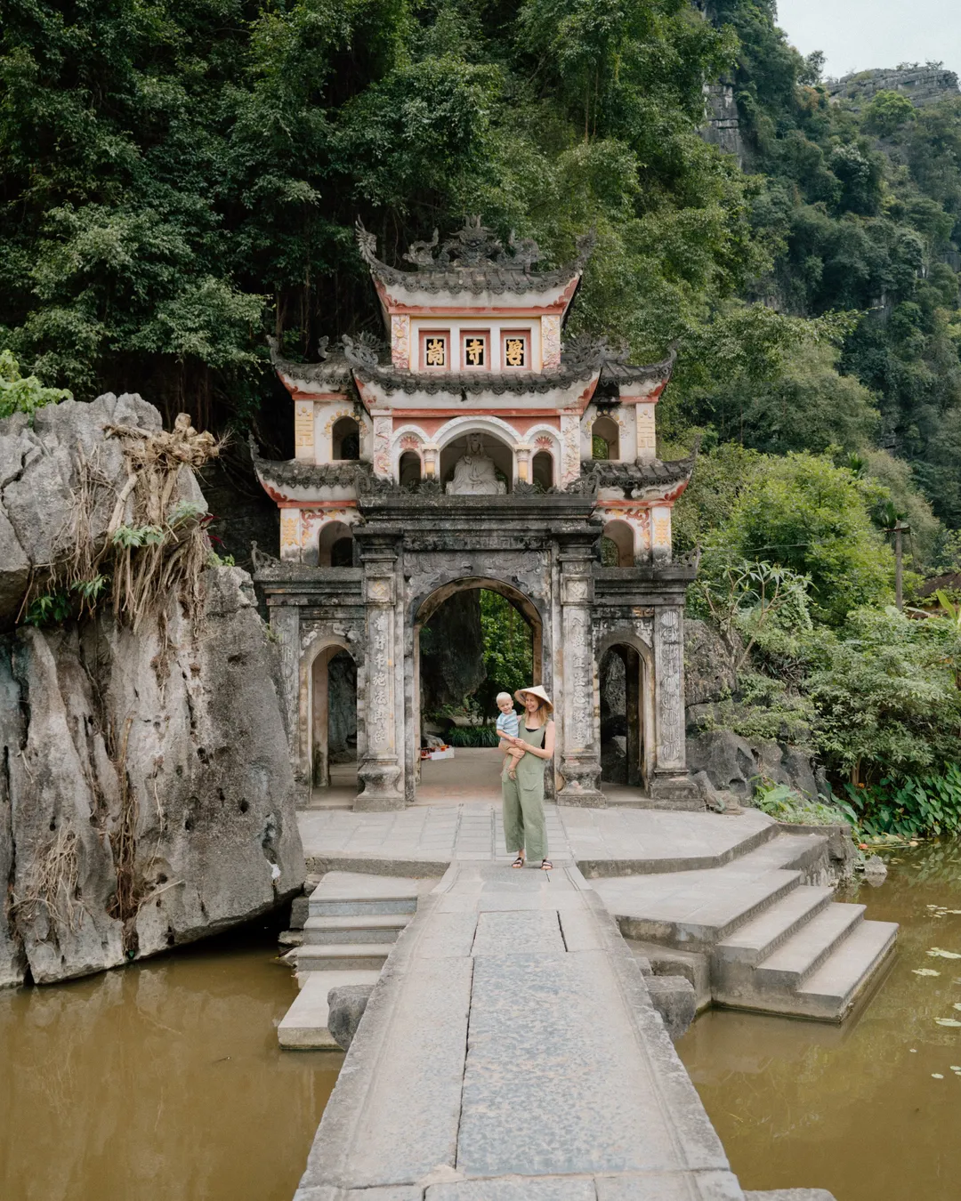 While you can hire a driver to get you here, I highly recommend jumping on a bike and cycling over. We were staying at Tam Coc Luxury Homestay and managed the bike ride with our 1 & 4 year old just fine.