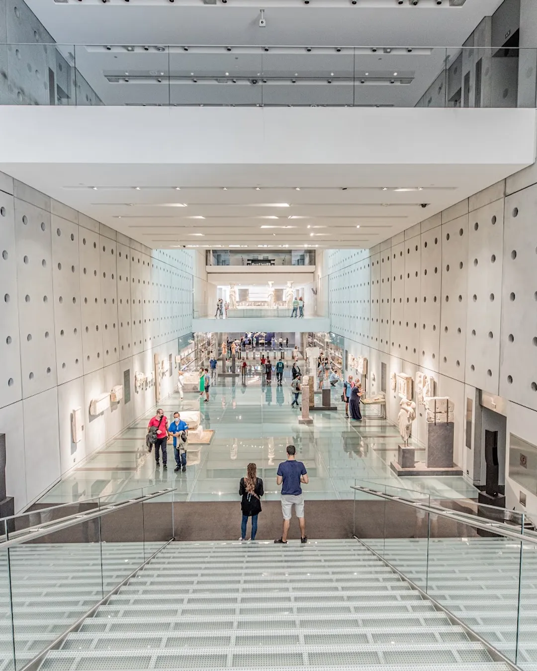 Designed by Bernard Tschumi, the Acropolis Museum is a masterpiece of modern architecture, designed to enhance the historical artifacts inside. One of its most unique features? Glass walls that allow visitors to see the Acropolis from inside the museum, and glass floors revealing the ancient ruins that once stood beneath it.