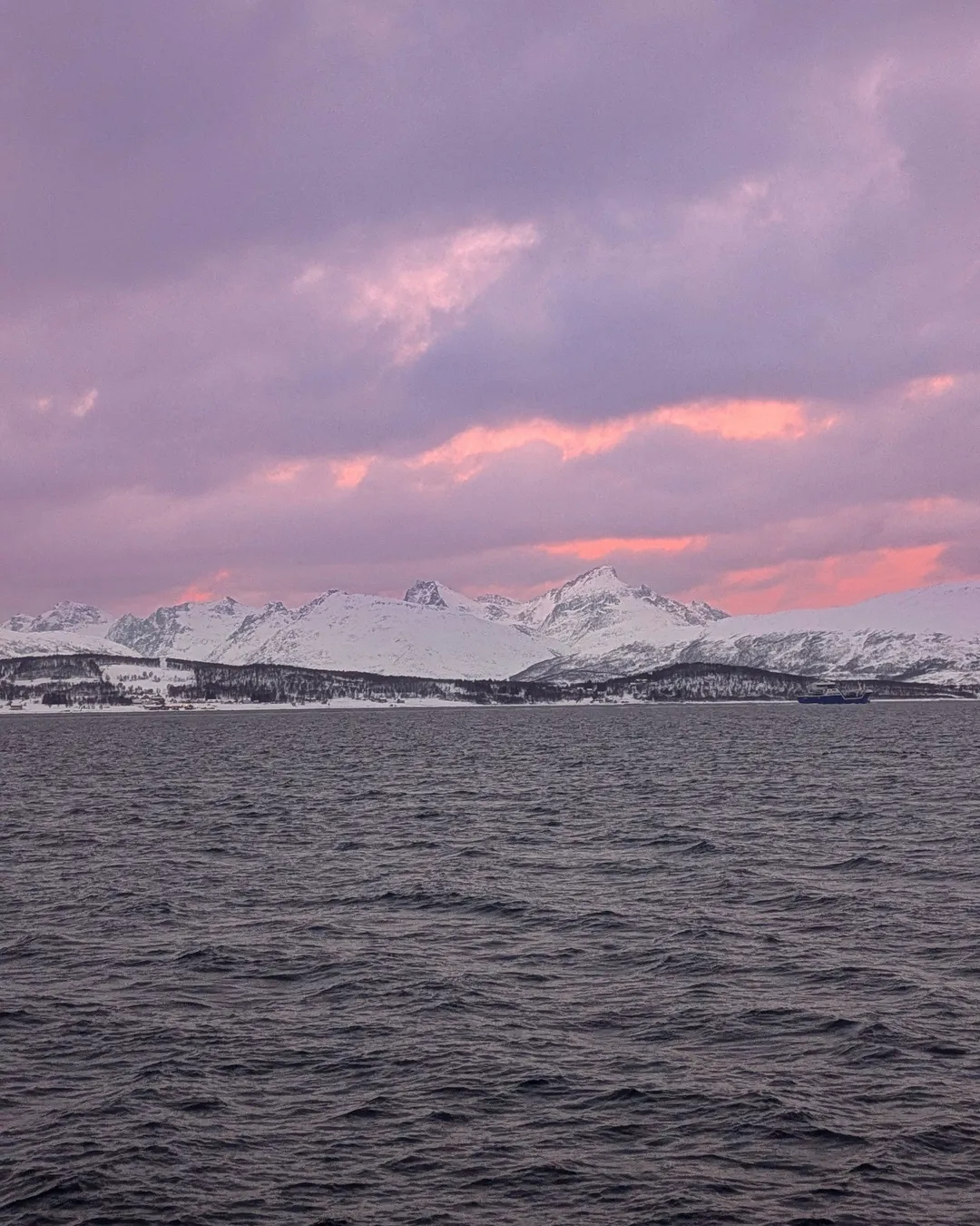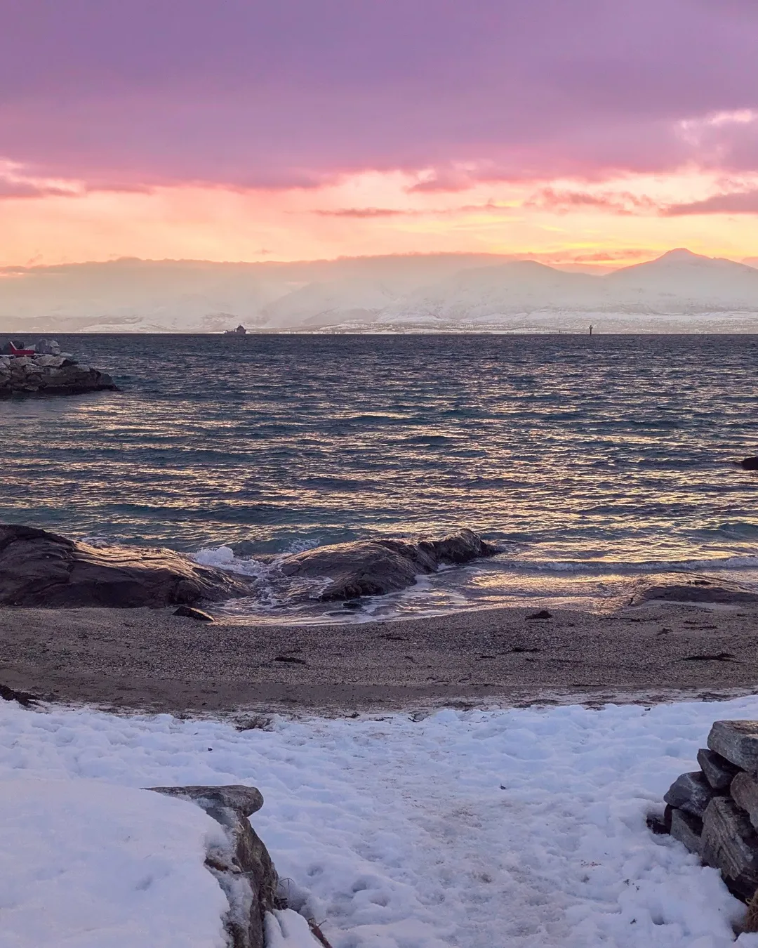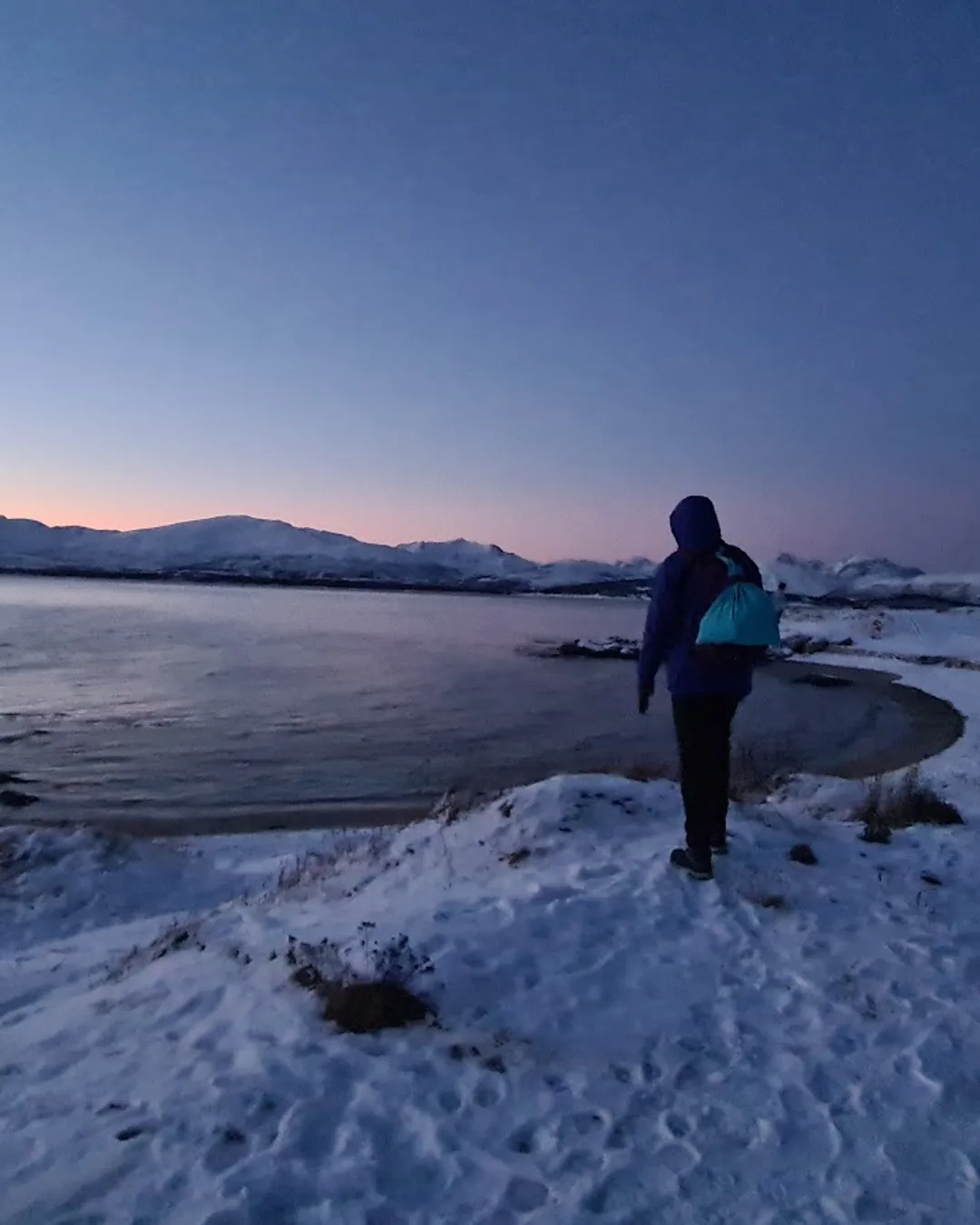 In winter, Telegrafbukta is unforgettable. The sunsets are slow and dramatic, washing the sky with pastel pinks, golds, and fiery reds over the mountains. And once darkness falls, this is one of the best free places in Tromsø to watch the northern lights without leaving the island — far enough from the city lights for clear skies, yet close enough to reach easily.