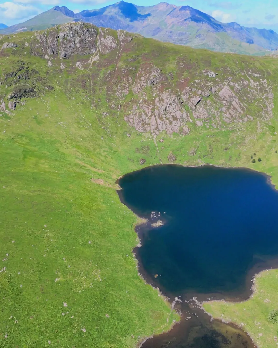 The landscape is stunning, with glacially-formed basins, dramatic slopes, and crystal-clear waters perfect for wild swimming or a picnic, giving a real French Alps vibe. It’s also a known spot for brown trout and Arctic char. The path is decent but unsigned, so a GPS or map is essential. You can park at the trailhead (53.048154, -3.934052) — a tiny layover for 5 cars — or start from the other side of the mountains along the A road.