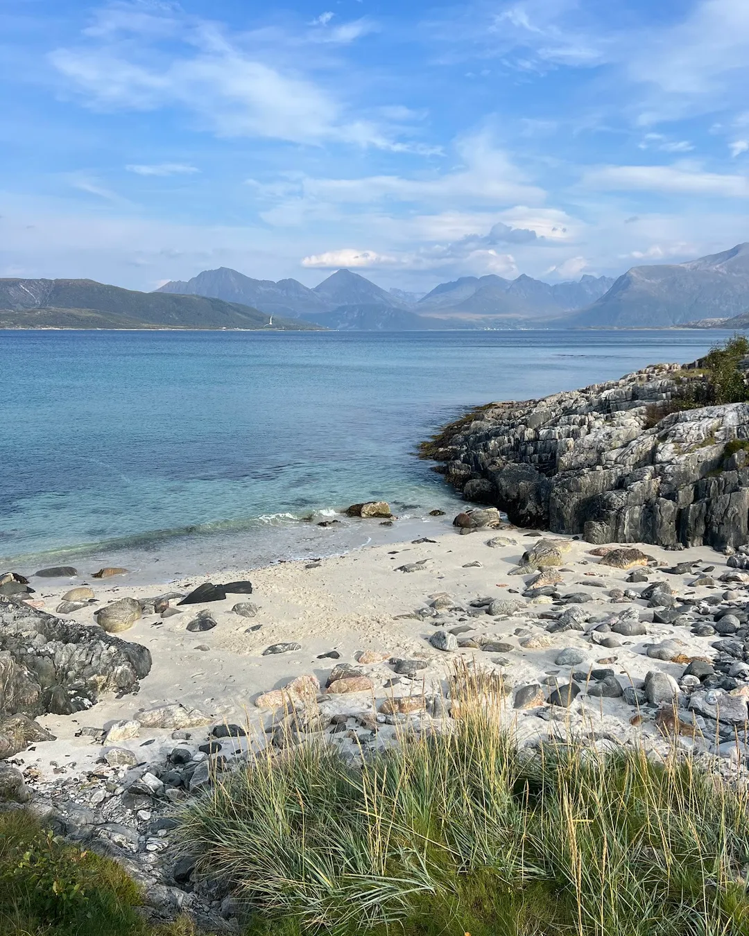 Reina Beach is one of the most picturesque spots on Sommarøy and one of my favorites, with its crystal-clear turquoise waters, soft white sand, and dramatic fjord and mountain backdrop. Whether you’re a photographer, nature lover, or just looking for a peaceful spot, this beach is a true Arctic gem.