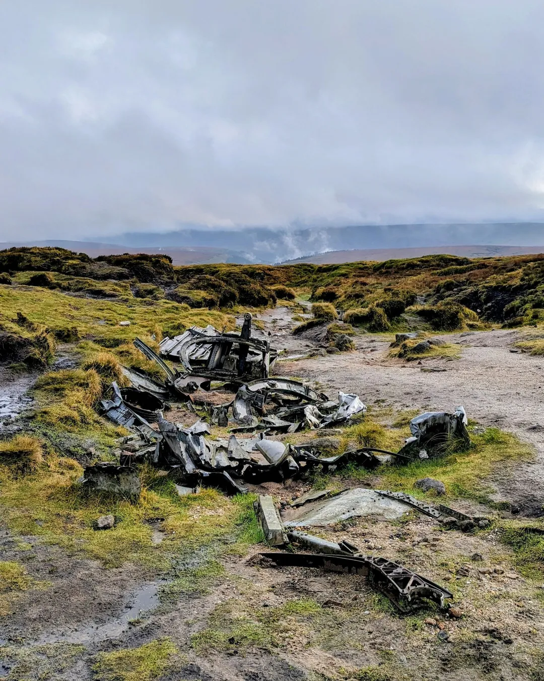 This is not a typical viewpoint — it’s a raw, exposed landscape where twisted metal, engine parts, and aircraft fragments remain preserved as a tribute to the 13 crew members who lost their lives. The silence of the moors adds a sense of reflection, making this one of the most atmospheric hikes in the region.