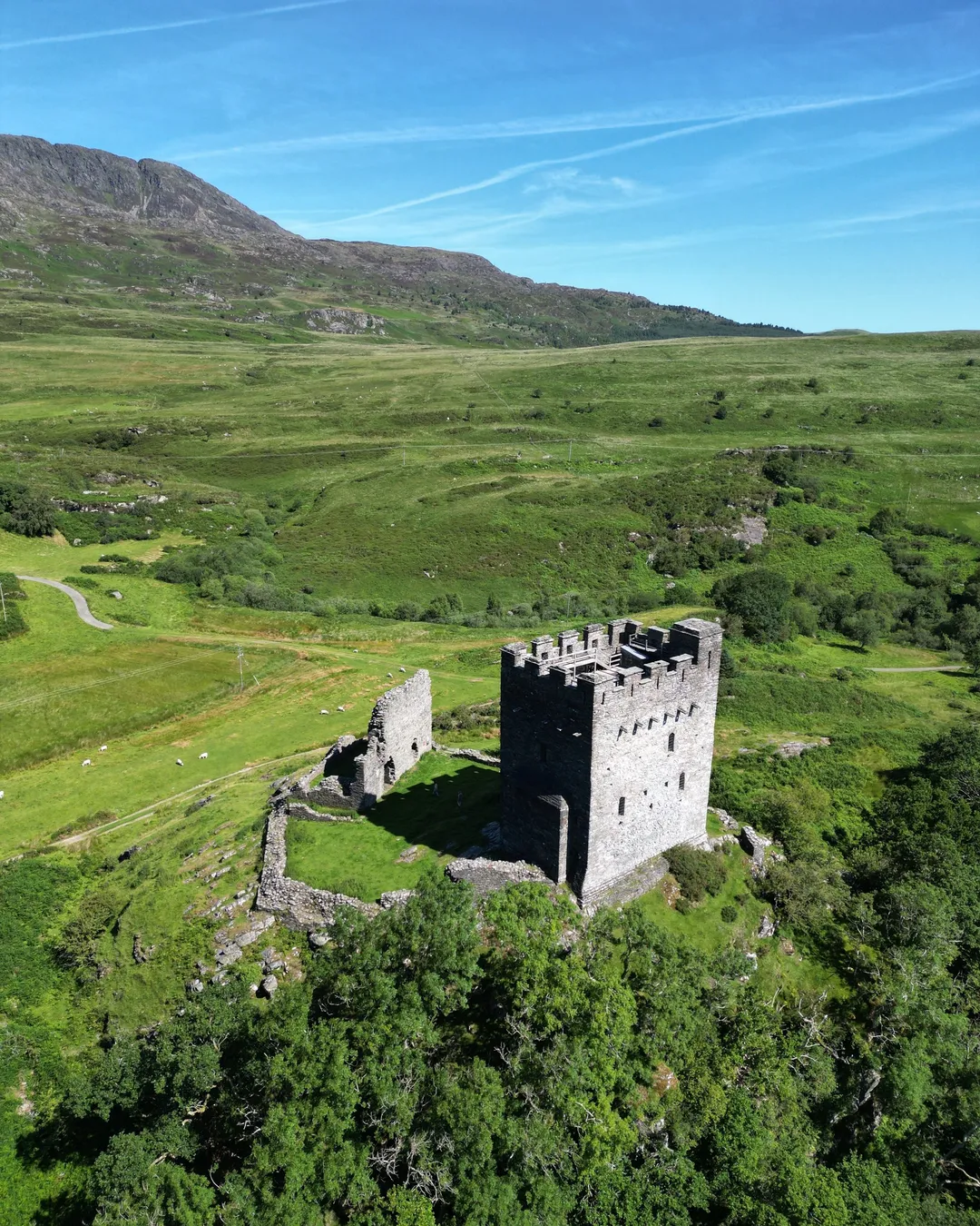 Castell Dolwyddelan is a historic castle ruin tucked in the middle of rolling fields, where sheep roam freely and the mountain and valley views are spectacular. I loved visiting because it feels off the beaten path, offering a peaceful escape and a real sense of Welsh history. Informative signs around the site help bring the castle’s story to life, making it a perfect stop for history enthusiasts and photographers alike.
