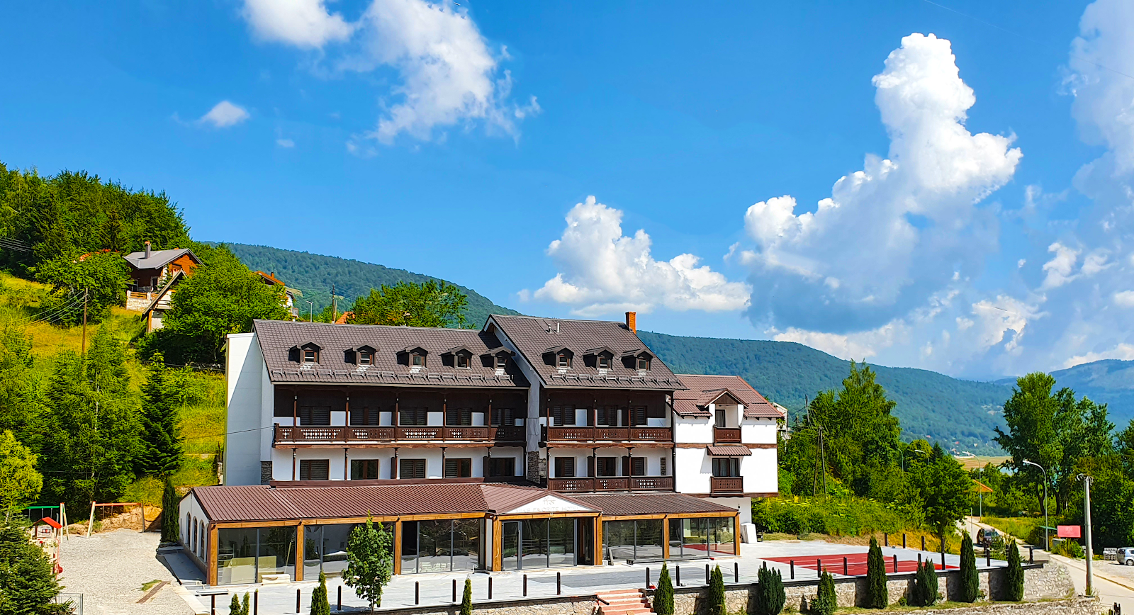 Mia's Favorite Hotel is a modern ski resort located in the beautiful Mavrovo National Park, offering picturesque views of its luxuriant surroundings. With spacious yet cozy room options, ample parking and dependable Wi-Fi, Mia's Favorite Hotel strikes the perfect balance between sophisticated luxury and rustic charm. Guests can linger by the lobby bar or venture outside into nature for some fresh air. They can choose to dine in the restaurant, where traditional Macedonian cuisine can be savored, or order drinks from friendly bar staff. Guests can also take advantage of other facilities such as the spa or take the opportunity to relax outside with stunning views of the lake and mountains. Whether it's a romantic weekend away or a fun family holiday, Mia's Favorite Hotel is the ideal place for travelers to create lasting memories.