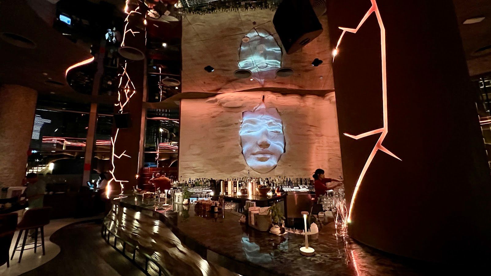 Stylish and upbeat — it feels both like a proper restaurant and a grown-up hangout spot with music, live entertainment some nights and a terrace overlooking the Burj Khalifa.