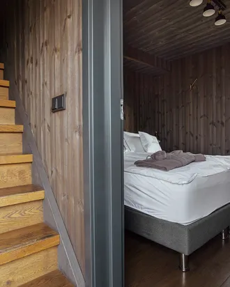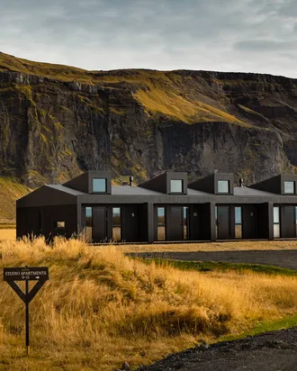The eight luxury lodges were built in 2019. The lodge has two bedrooms (one of them upstairs), and a bathroom with a shower cabin. The kitchen and living room are in an open area with large panorama windows, cozy wooden design, and Nordic-style furniture. A small outside terrace completes the house. Built in 2019, each lodge is 43 m2 and comes with all necessary equipment. Recently, 4 new studio apartments were added. Located just 1 km from the famous Seljalandsfoss waterfall, each of our studio apartments is perfectly suited for 4 people.