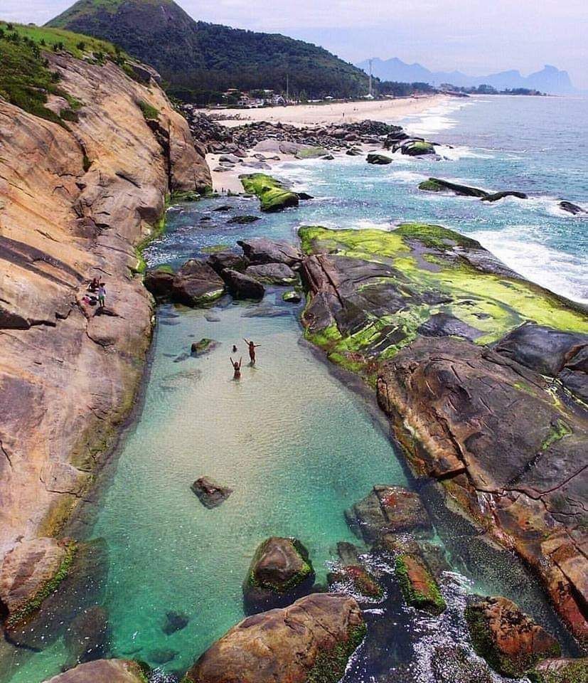Playa oculta con piscina natural.