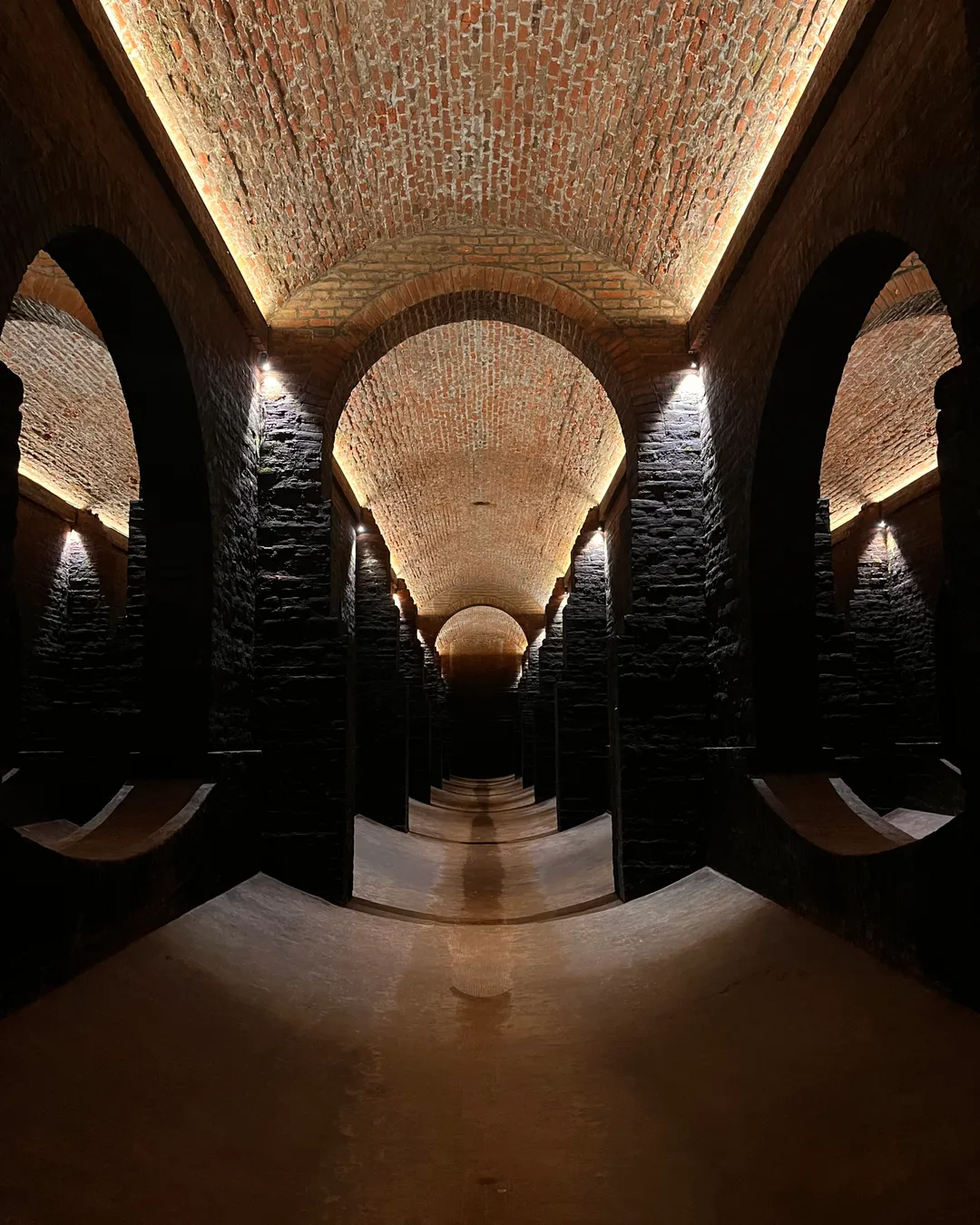 I serbatoi d’acqua sotterranei sotto Žlutý Kopec furono costruiti tra il 1874 e il 1917 per sostenere l’espansione urbana di Brno, nell’ambito del sistema idrico “Pisárecký”. Il primo serbatoio risalente al 1874, fu progettato dall’ingegnere inglese Thomas Docwry e realizzato interamente in mattoni con 11 scomparti e una volta a 6,5 m di altezza, capace di oltre 9,5 milioni di litri. Il secondo (1894), opera dell’ing. Emil Procházka, misura 35 × 55 m, ospita 70 pilastri di mattoni e aveva capacità di circa 8,5 milioni di litri. Il terzo serbatoio (1917), in calcestruzzo, è composto da due camere colonnate e completa il sistema con oltre 30 milioni di litri totali. Dopo la dismissione del sistema nel 1997, i serbatoi vennero abbandonati e rischiarono la demolizione, fino alla dichiarazione di monumento culturale nel 2019. L’illuminazione artistica, le installazioni e le performance musicali grazie alla perfetta acustica del luogo, lo rendono ora una suggestiva sede per eventi culturali e visite guidate o autonome. Il complesso è accessibile da martedì a domenica, dalle 10:00 alle 18:00 (ultimo ingresso 17:00), con biglietti acquistabili online o presso i centri TIC BRNO.