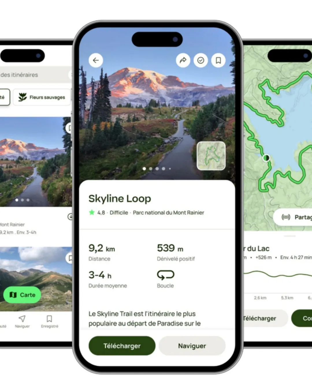 Dans chacun des spots "hiking" que j'ai partagés, tu trouveras un lien vers une des applis / sites suivants, qui vous donnera le tracé GPS de la rando :