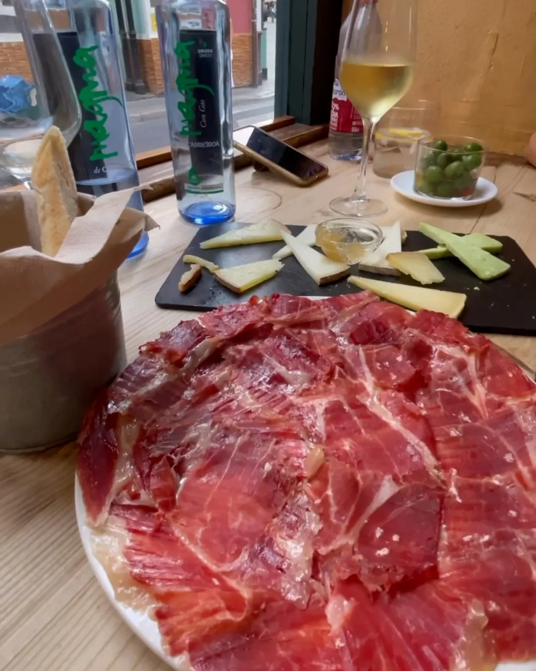 The city's tapas culture prominently features jamón ibérico.