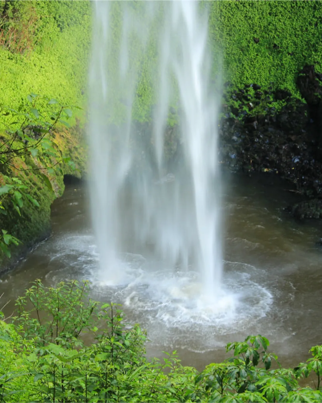 The main waterfall is at the bottom of a volcanic canyon and is set deep in the bush. There is a small wooden bridge where you can view the waterfall from or just walk either side of the bridge to get a little closer. It's one of those huge, thunderous waterfalls but a truly beautiful one you can sit and appreciate.