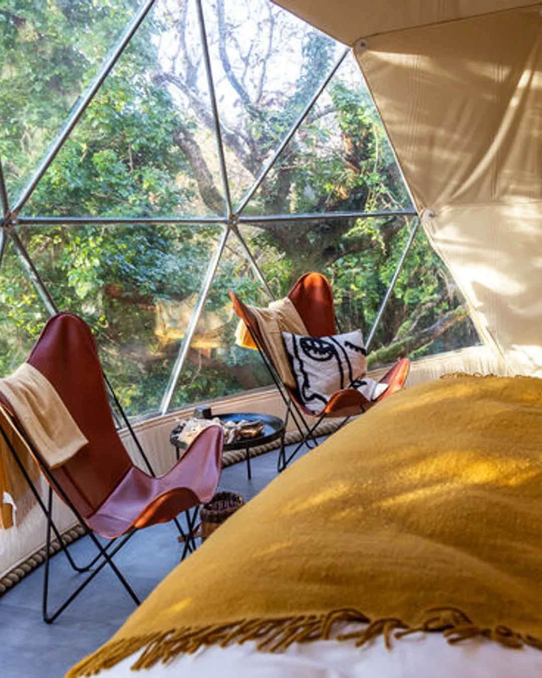 Up in Connemara, Co. Galway, there’s a tiny piece of magic called Fernwood. It’s on a woodland farm just outside Clifden, and they’ve built two unforgettable hideouts: the Treehouse Dome and the Stilt House. The Treehouse Dome is a geodesic wooden dome tucked up in the trees, around 5 meters above the forest floor. It’s so peaceful — you sleep on a super-king bed, light the wood-burning stove, and there’s a large deck to just sit on and listen to the leaves.