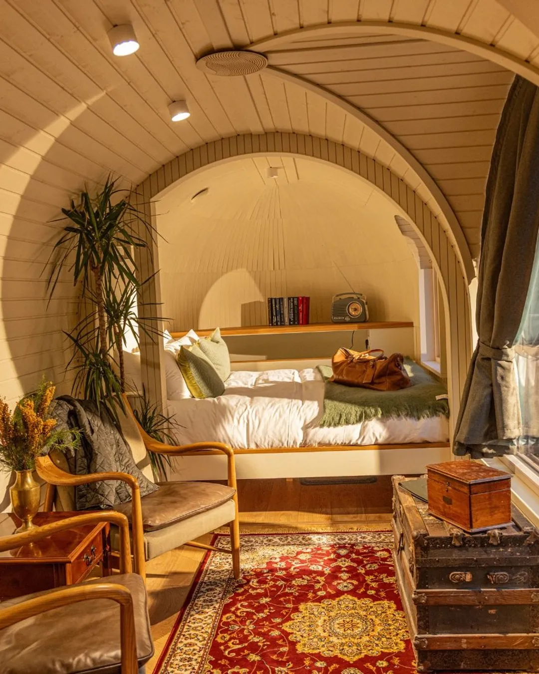 The Stilt House is their architectural showstopper — pine plywood inside, huge windows that open to the treetops, and a wood-fired Swedish hot tub hidden out the back so you can soak in nature. They’ve done it in a super eco way, with triple-glazed windows and green heating systems, so it’s both luxurious and sustainable.