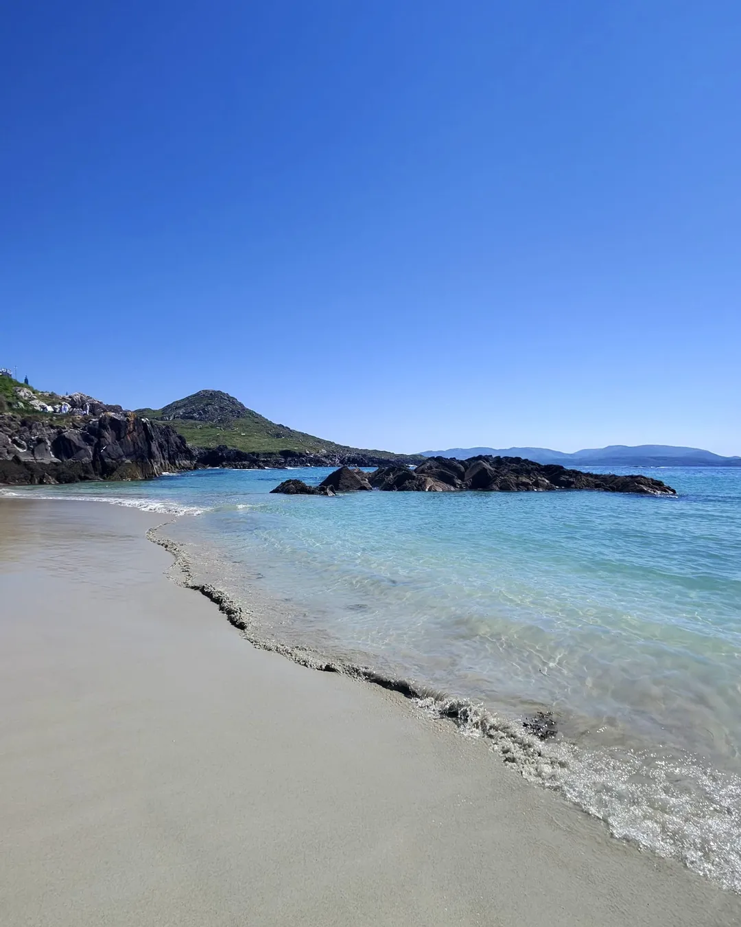 Paradise Found Beach is located near Caherdaniel in County Kerry, on Ireland’s west coast. A sandy beach with unusually clear, turquoise‑coloured water for the Irish coast, giving it a somewhat exotic, unexpected feel.