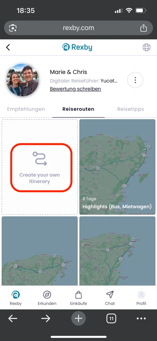 Alternativ kannst du auch deine komplett eigene Route erstellen. Hierfür wählst du einfach "Create your own itinerary"