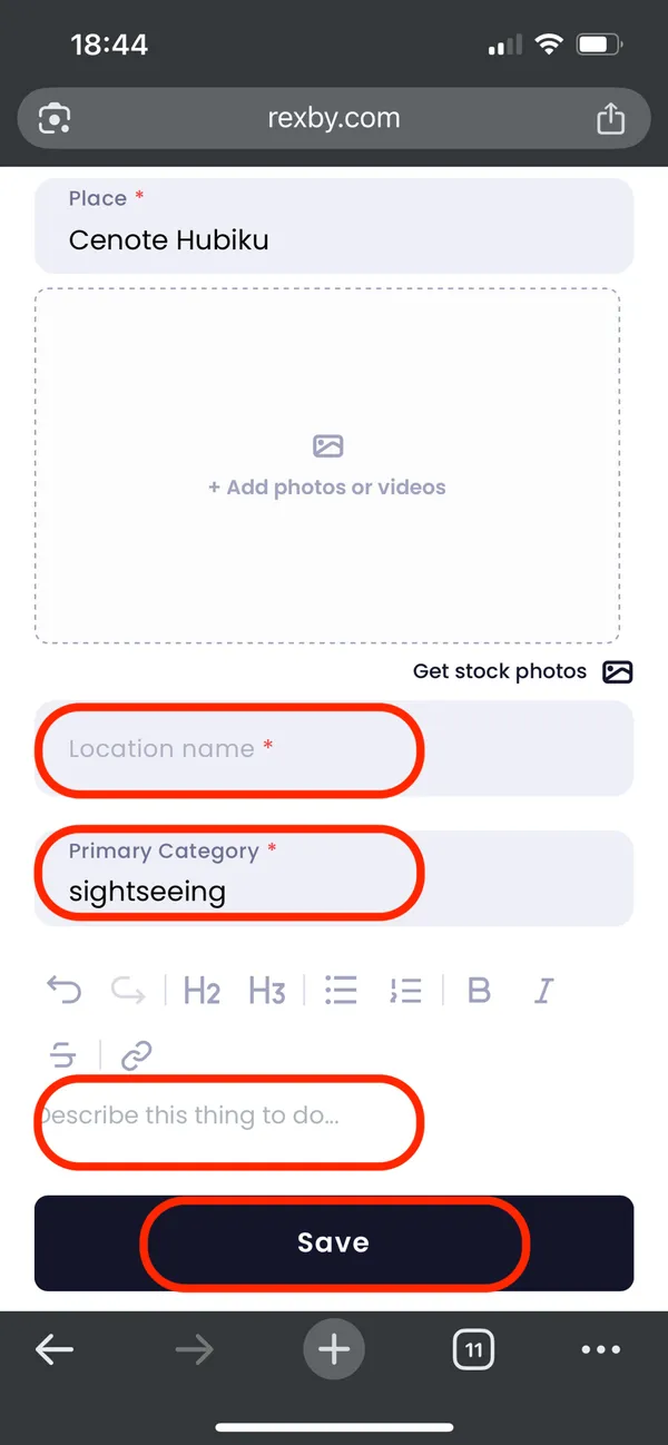 Jetzt kannst du deinen Pin noch umbenennen und musst eine Kategorie sowie eine Beschreibung hinzufügen. Dann noch auf "Save" klicken und dein eigener Pin ist in der Karte.