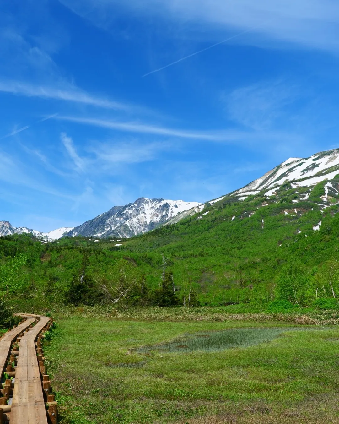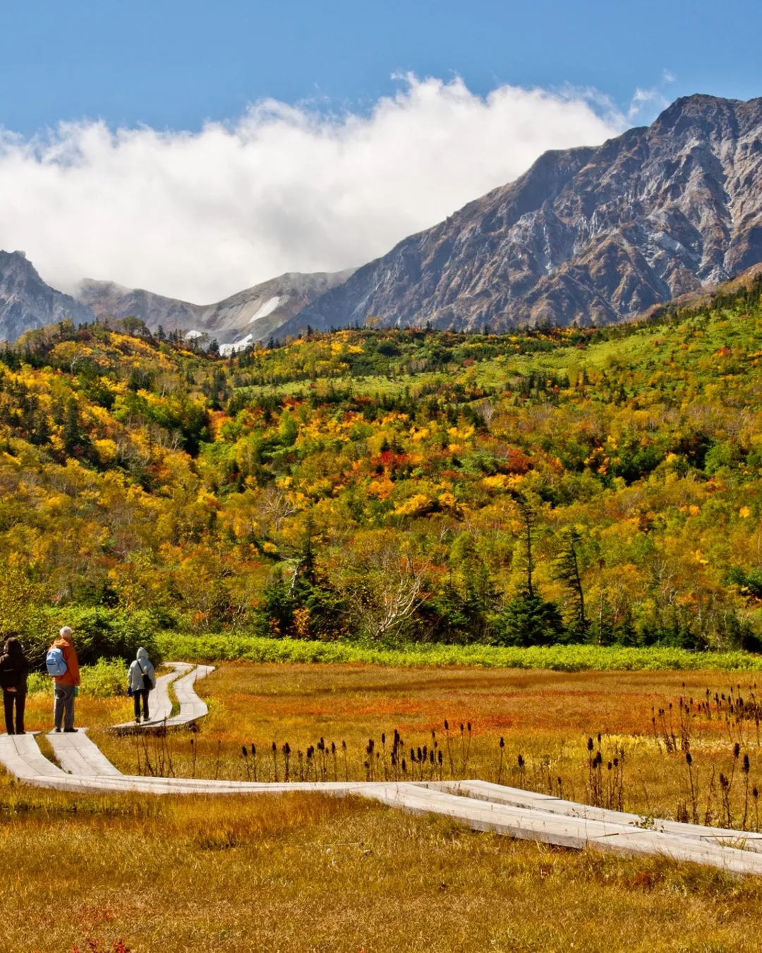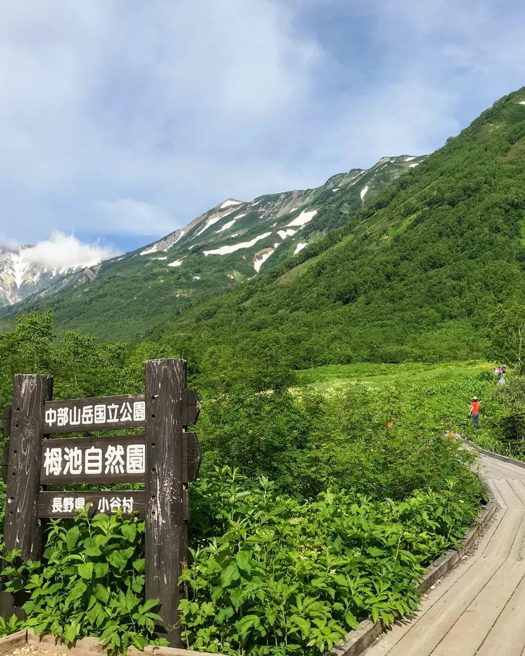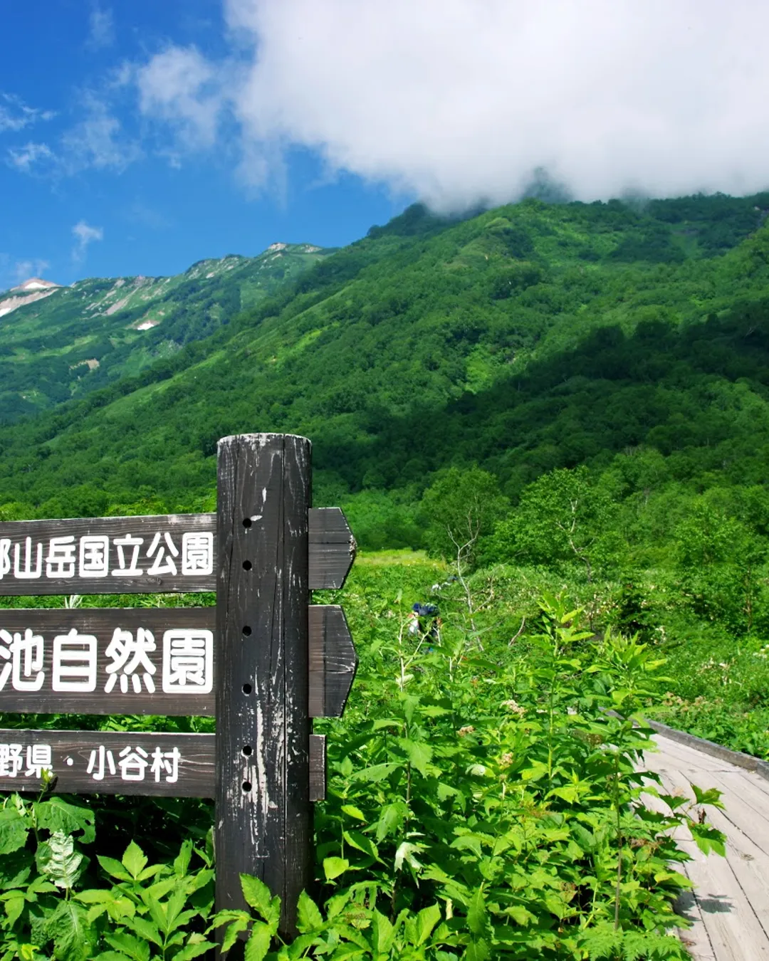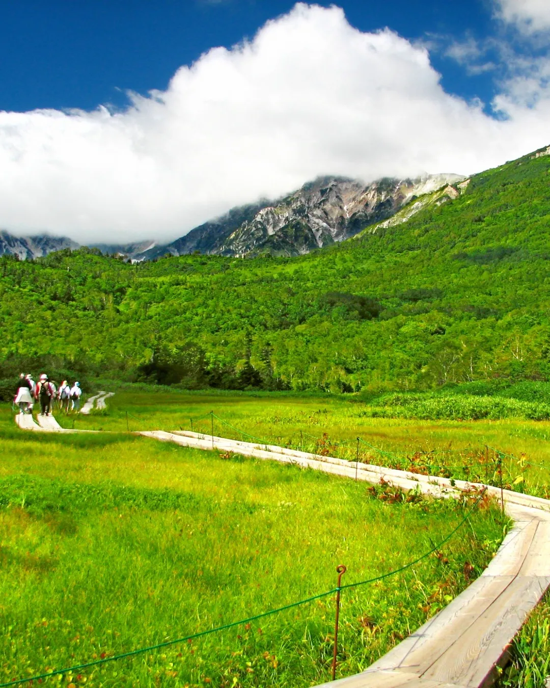 The 5.5km boardwalk in Tsugaike Nature Park offers an easy and scenic walk, showcasing stunning views of the Hakuba Sanzan mountains and diverse flora and fauna. During the park's open season, visitors can also enjoy a 5,320m aerial ride on the gondola lift "Eve" and the ropeway "Tsugaike Panorama Way," making it a popular spot for light trekking.
