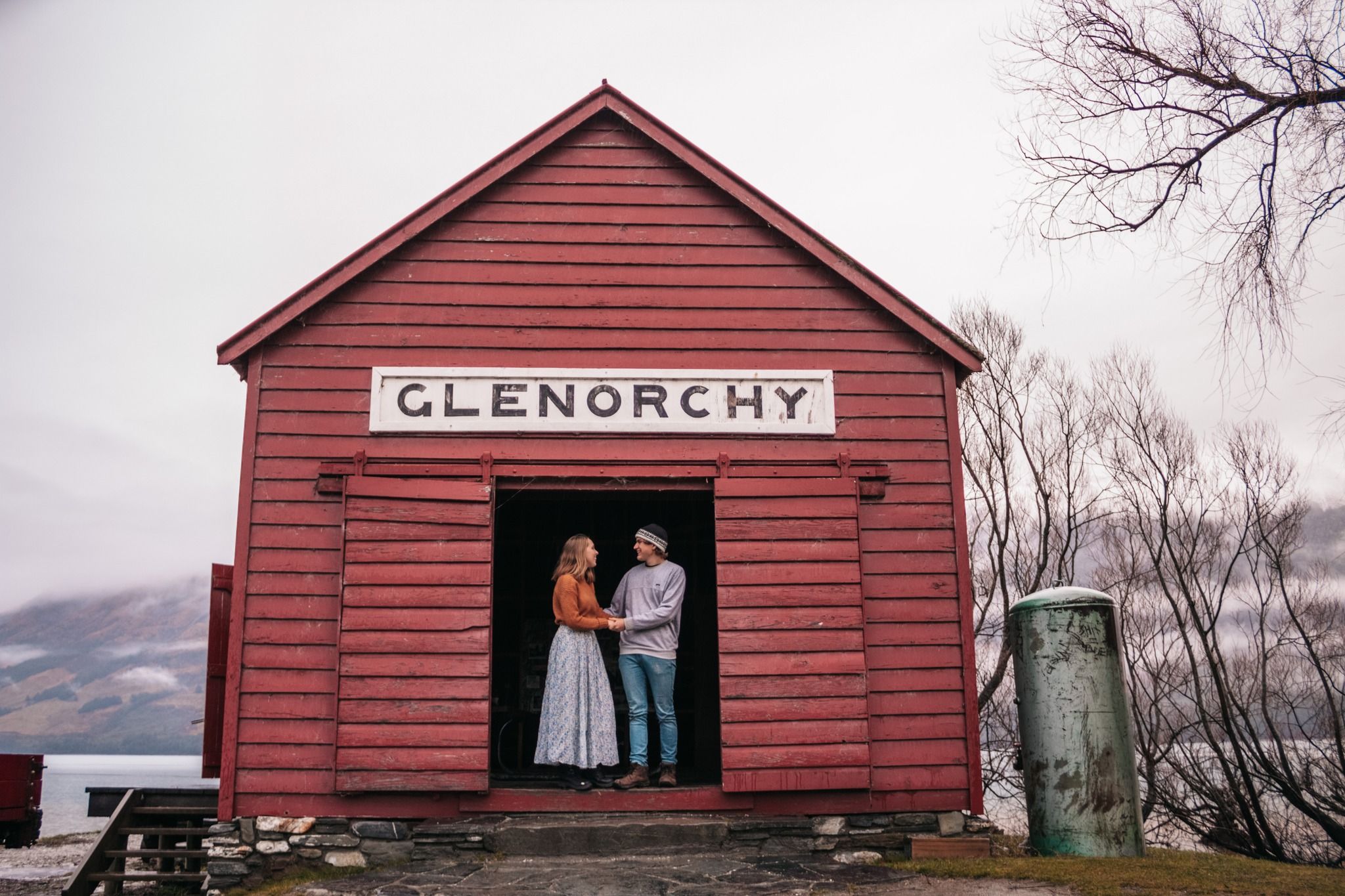 Quaint red boat shed and wharf