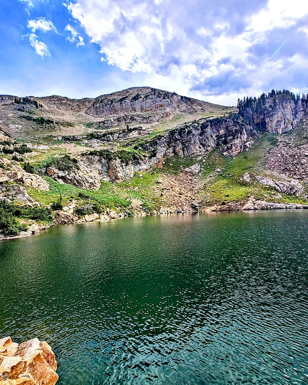 Scenic mountain hike to lake