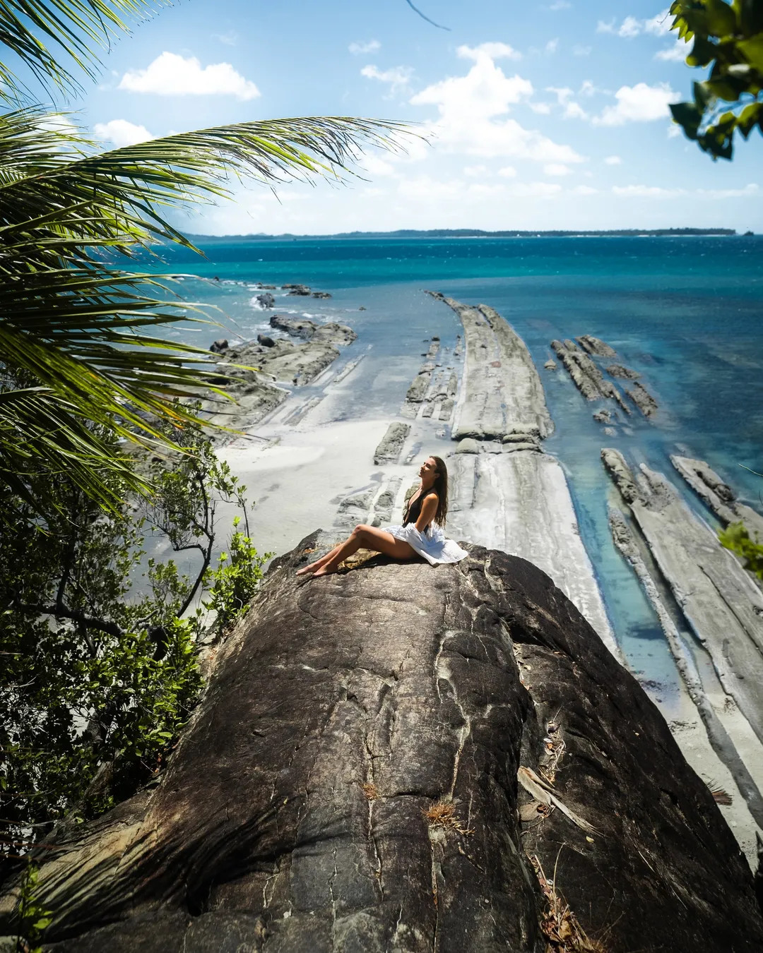 Island with clear water and a rock formation