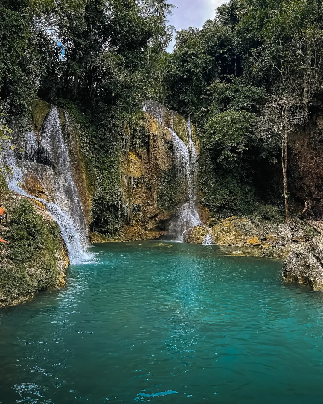 twin waterfalls in tropical setting