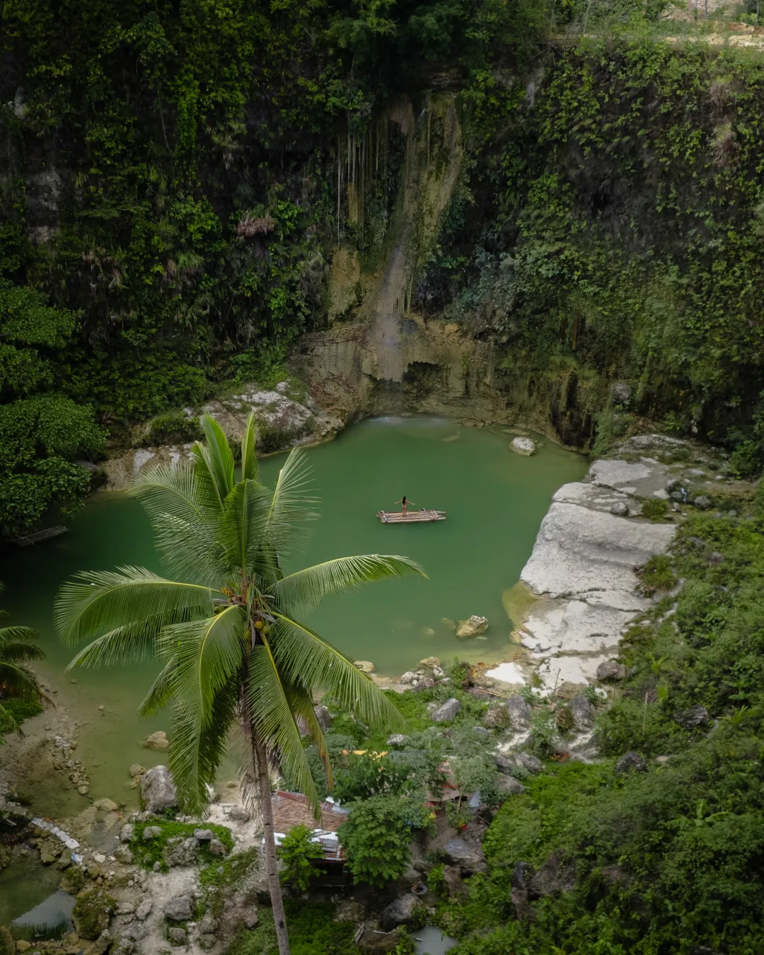 waterfall with a floating platform