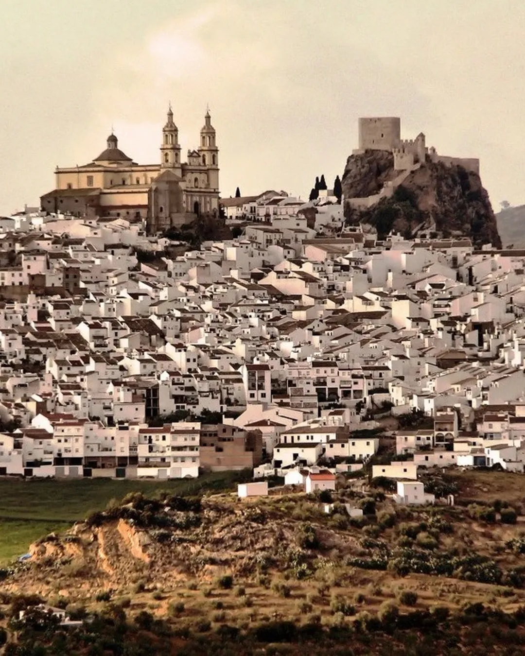 In the lands of Cadiz, where the horizon undulates, olive fields stretch out, and the slopes are discreetly tinged with white, rise the monumental Olvera Castle and the Church of Our Lady of the Incarnation 🏰⛪. Both guard a beacon of light at 640 meters above sea level, making Olvera an excellent viewpoint of the Sierra de Cadiz 🏞️. In the primitive city center lies the neighborhood of La Villa, with its characteristic labyrinthine layout and stretches of walls that recall its Andalusian past 🏘️. From the Town Hall square, one can exit through an arch attached to Calzada Street, which leads down a stepped ramp to the spacious church square. On one side, Our Lady of the Incarnation, on the other, the castle, and in the middle, a sea of mountains and olive fields that produce the Sierra de Cadiz Designation of Origin olive oil 🌿.