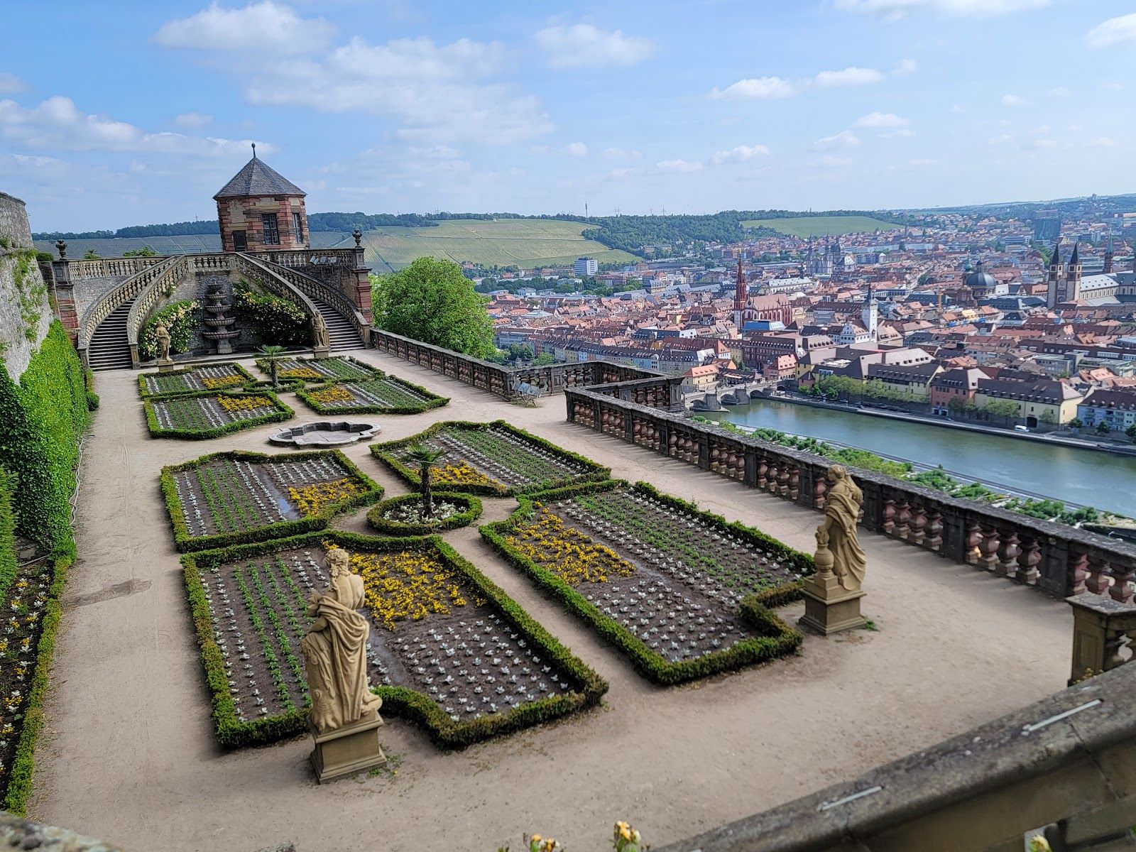 It is located on top of a hill surrounded by vineyards and with a spectacular view of the city. It is the symbol of Würzburg.