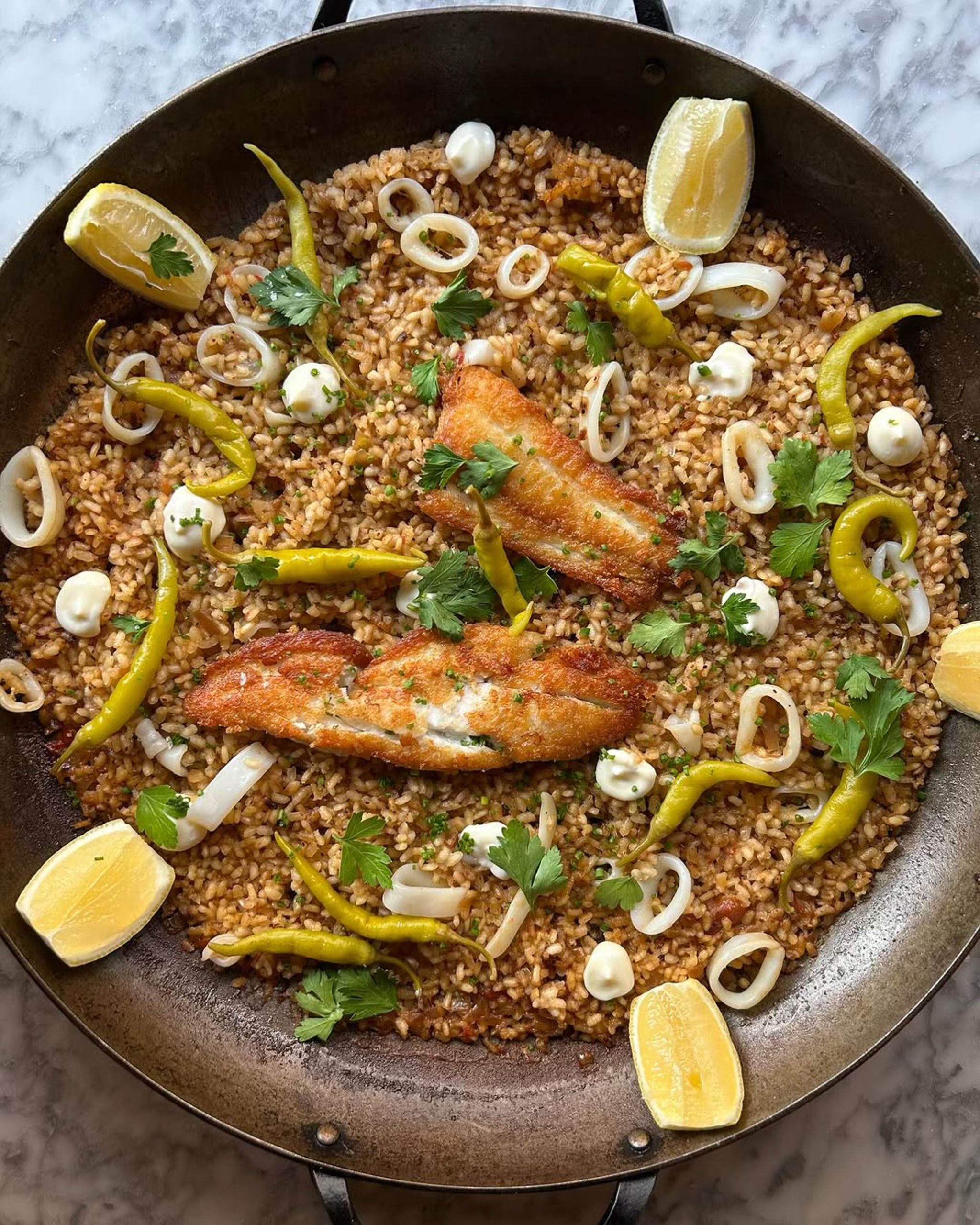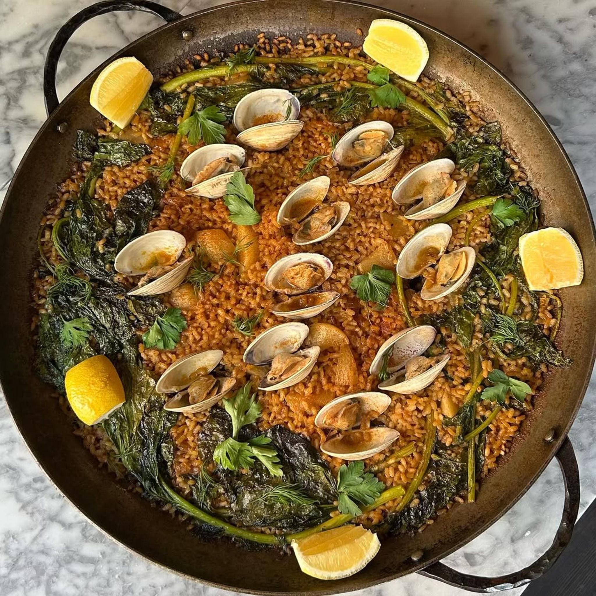 🍚 Paella Del Día: Changes daily. Ours featured a spicy sofrito base with tender chicken thighs and peppers.