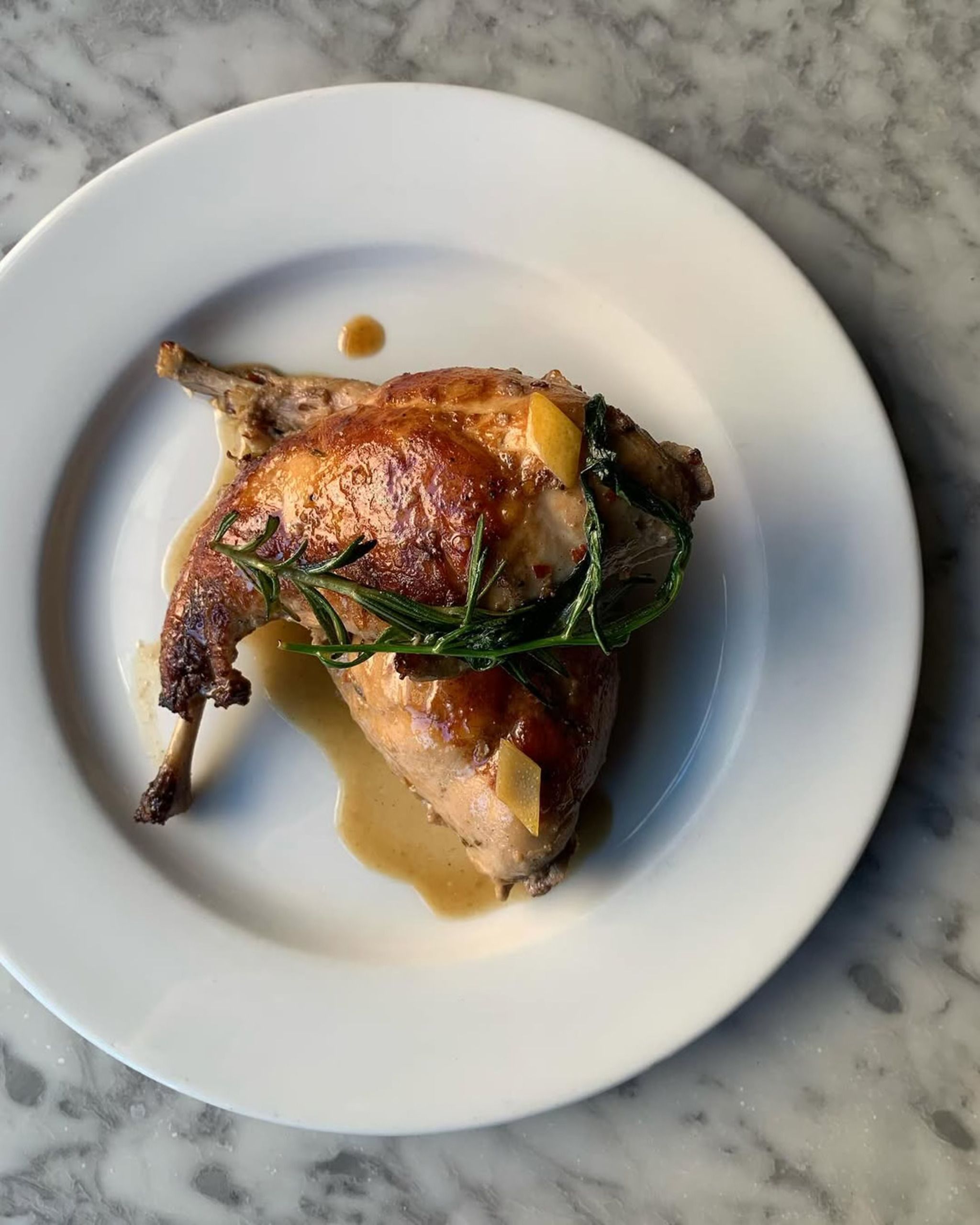 🐇 Conejo al Ajillo: Crispy, seared rabbit with notes of rosemary in a comforting jus.