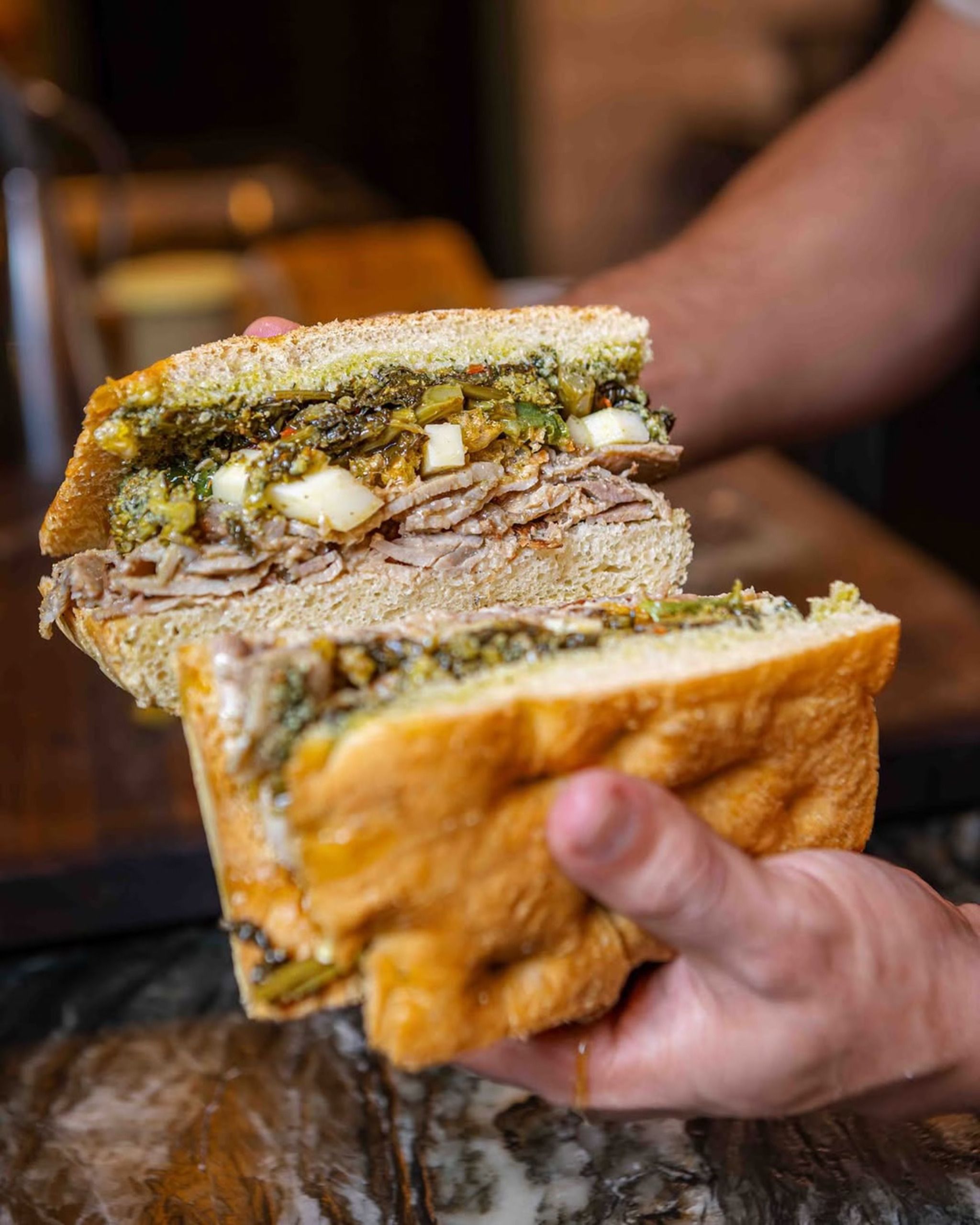 This isn’t a linger-over-lunch type of place, but the smell of roasted pork and freshly baked bread might make you want to stay anyway. The open kitchen is the heart of the space, and the staff’s attention to detail is evident in every sandwich they assemble.