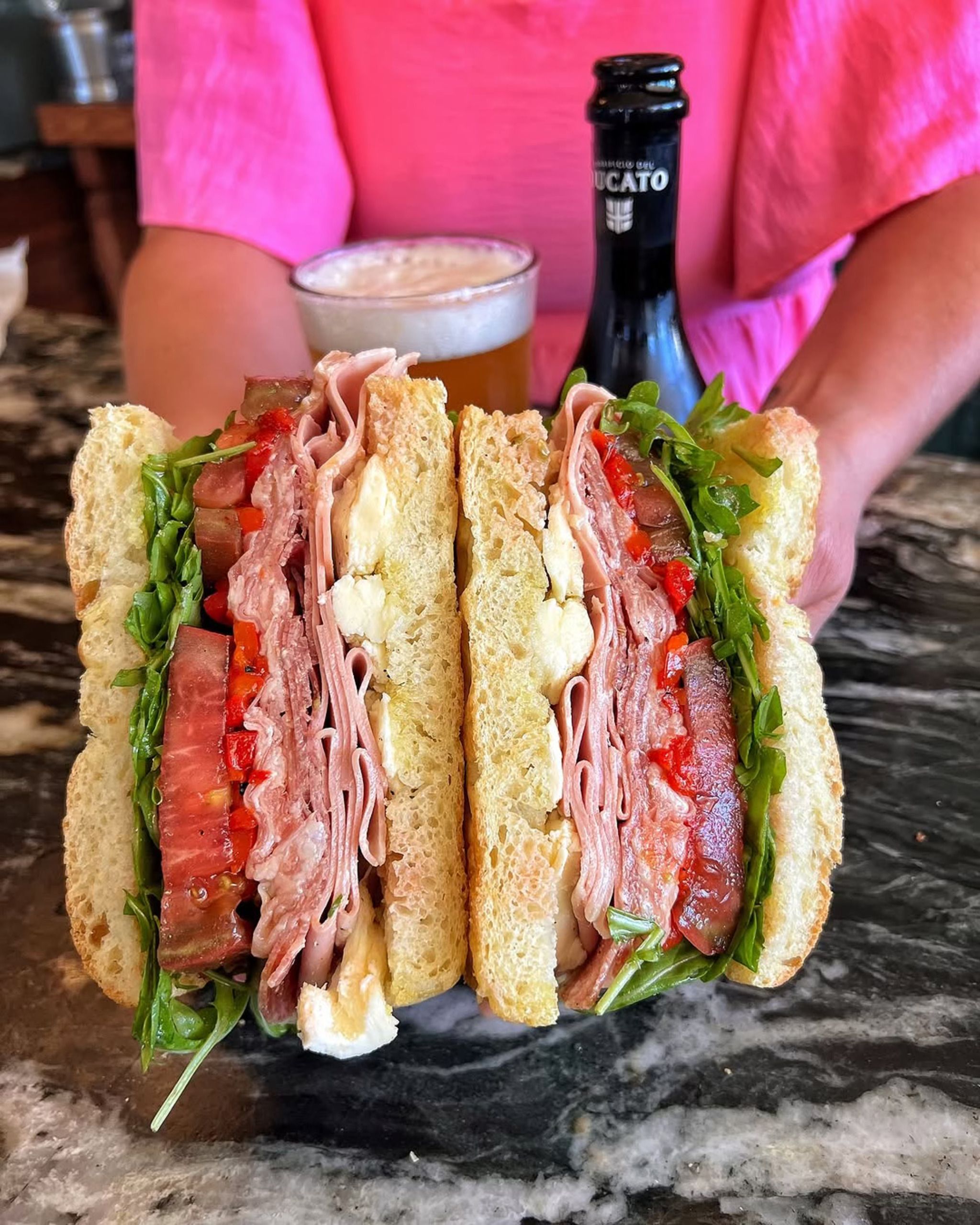 In the mornings, their $2 espresso is a standout deal, making it the perfect pairing for breakfast sandwiches or pastries. By lunch, there’s wine, beer, and low-ABV aperitivo, with local beer offerings that are perfect for washing down one of their signature sandwiches.