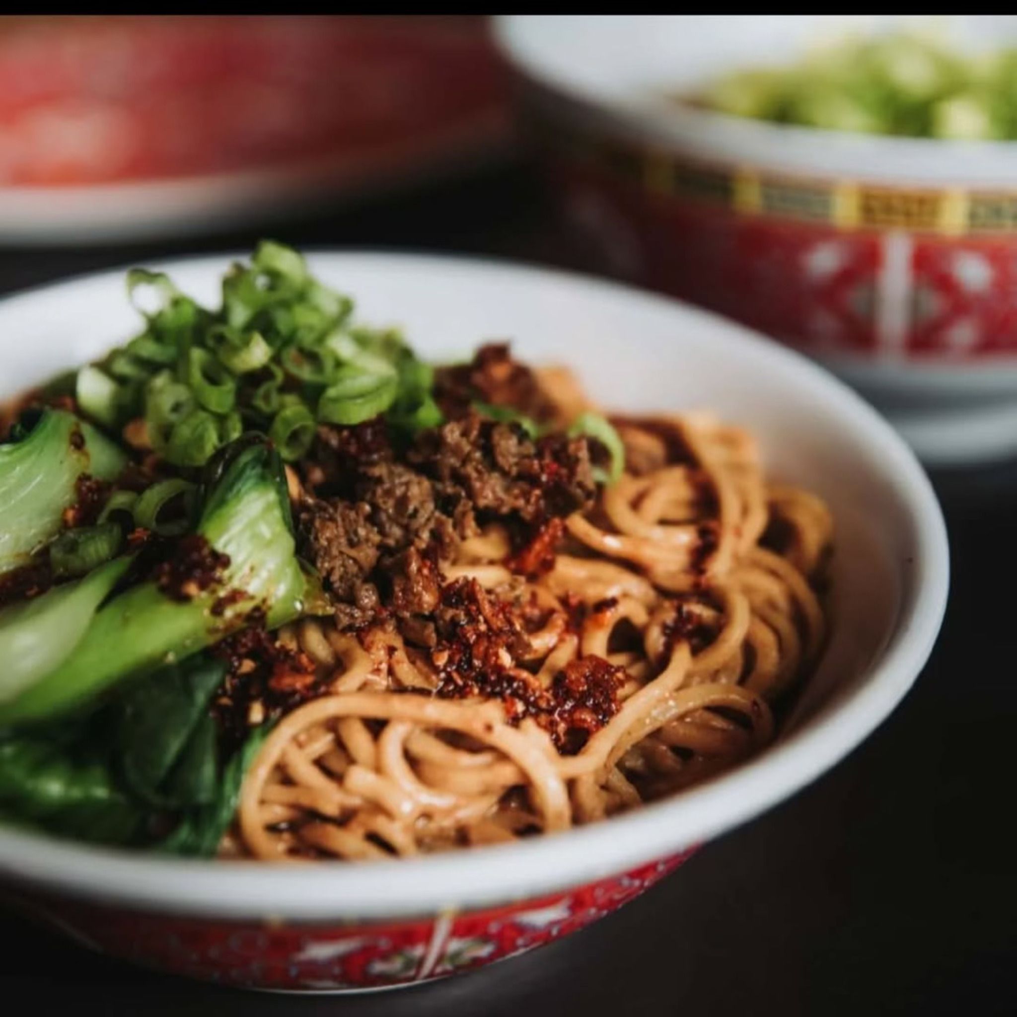 🍜 Dan Dan Mian – Black vinegar, sesame paste, wheat noodles, minced pork, peanuts, and Kwei Fei’s legendary chili crisp. Creamy, spicy, and a must-order.