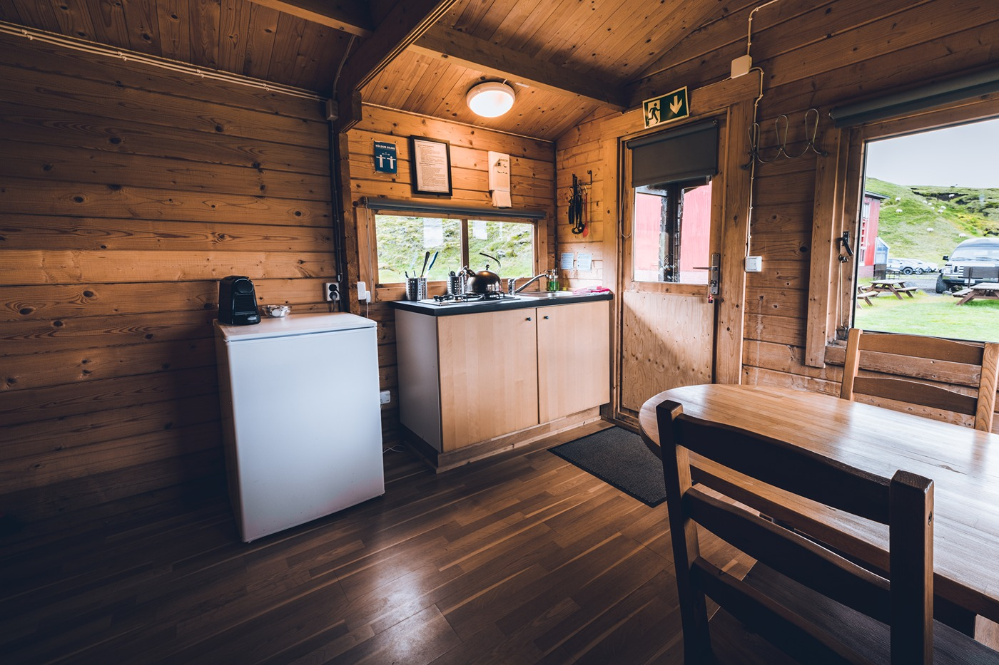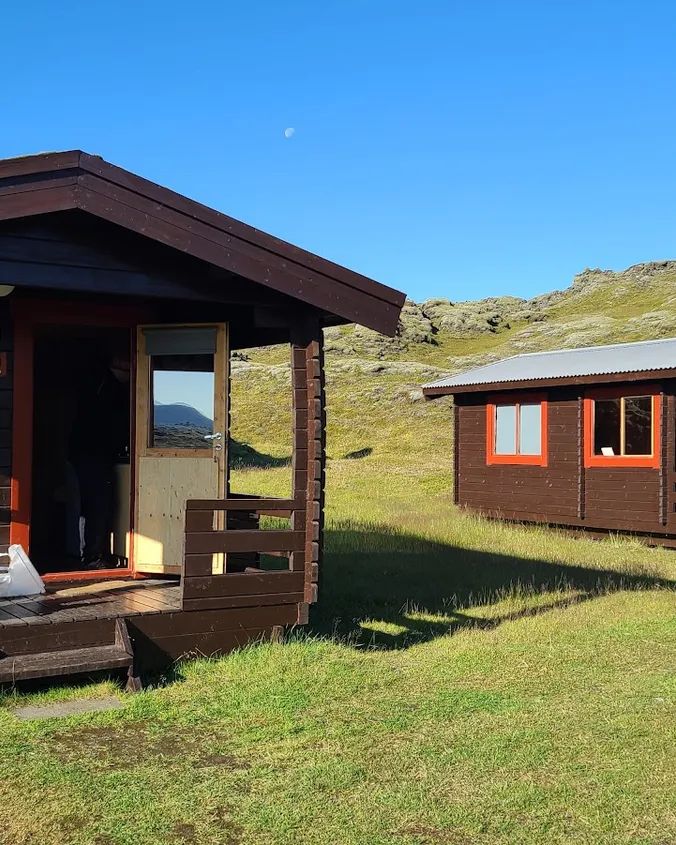 Hólaskjól is located in Lamskarðshólar next to an old lavafield that from when Eldgjá erupted, the years 934-940. It is a peaceful and beautful place with just a 5 minute walk up the lavafield to an unnamed waterfall in Syðri-Ófæra, that many call Silfurfoss or Litli-Gullfoss, we like to call it Huldufoss. The lavafield provides a good cover for Hólaskjól so there is almost never much wind. Also many hiking trails in the area. Hólaskjól is located in Lamskarðshólar next to an old lavafield that from when Eldgjá erupted, the years 934-940 Hólaskjól is located in Lamskarðshólar next to an old lavafield that from when Eldgjá erupted, the years 934-940. It is a peaceful and beautful place with just a 5 minute walk up the lavafield to an unnamed waterfall in Syðri-Ófæra, that many call Silfurfoss or Litli-Gullfoss, we like to call it Huldufoss. The lavafield provides a good cover for Hólaskjól so there is almost never much wind. Also many hiking trails in the area. In Hólaskjól we have room for 61 people with sleeping bags in a two-floor mountain lodge. The floors are separated and both have a private entrance, a kitchen, WC and a shower. There are also 3 cabins with WC and a kitchen that can be rented as a sleeping bag accommodation 4 people maximum per cabin. Shower is in a separate hut. In Langisjór there is accommodation and angling for 6 people. Langisjór is 40 km away from Hólaskjól. Gps coordinates: 64° 7,144'N, 18° 25,689'W