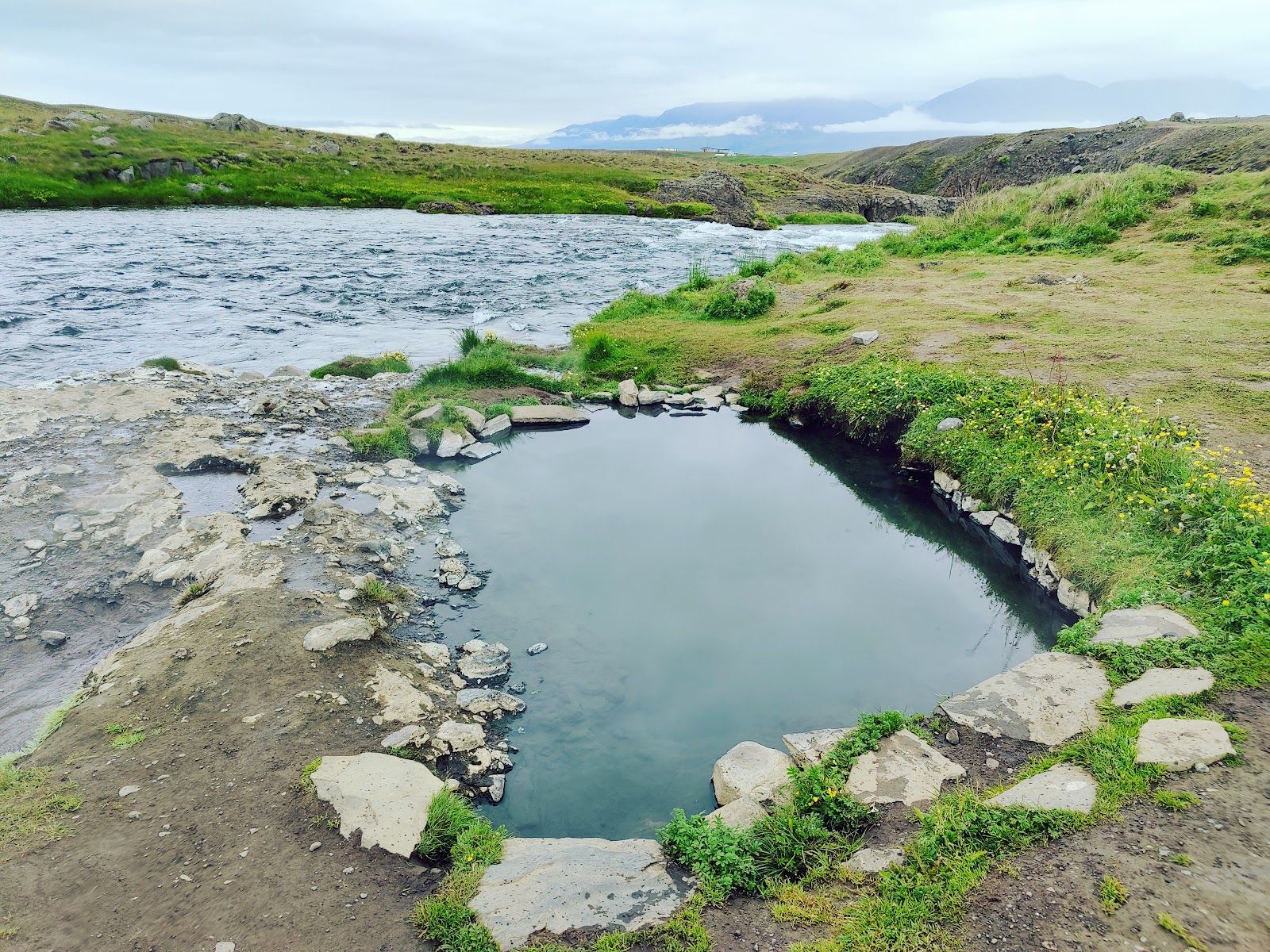 Exploring tranquil Icelandic hot spring