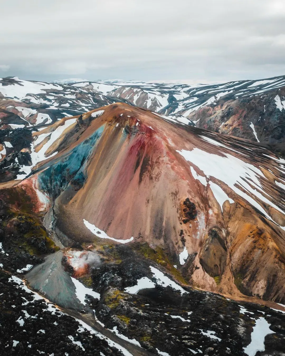 Rainbow-colored mountain in Iceland