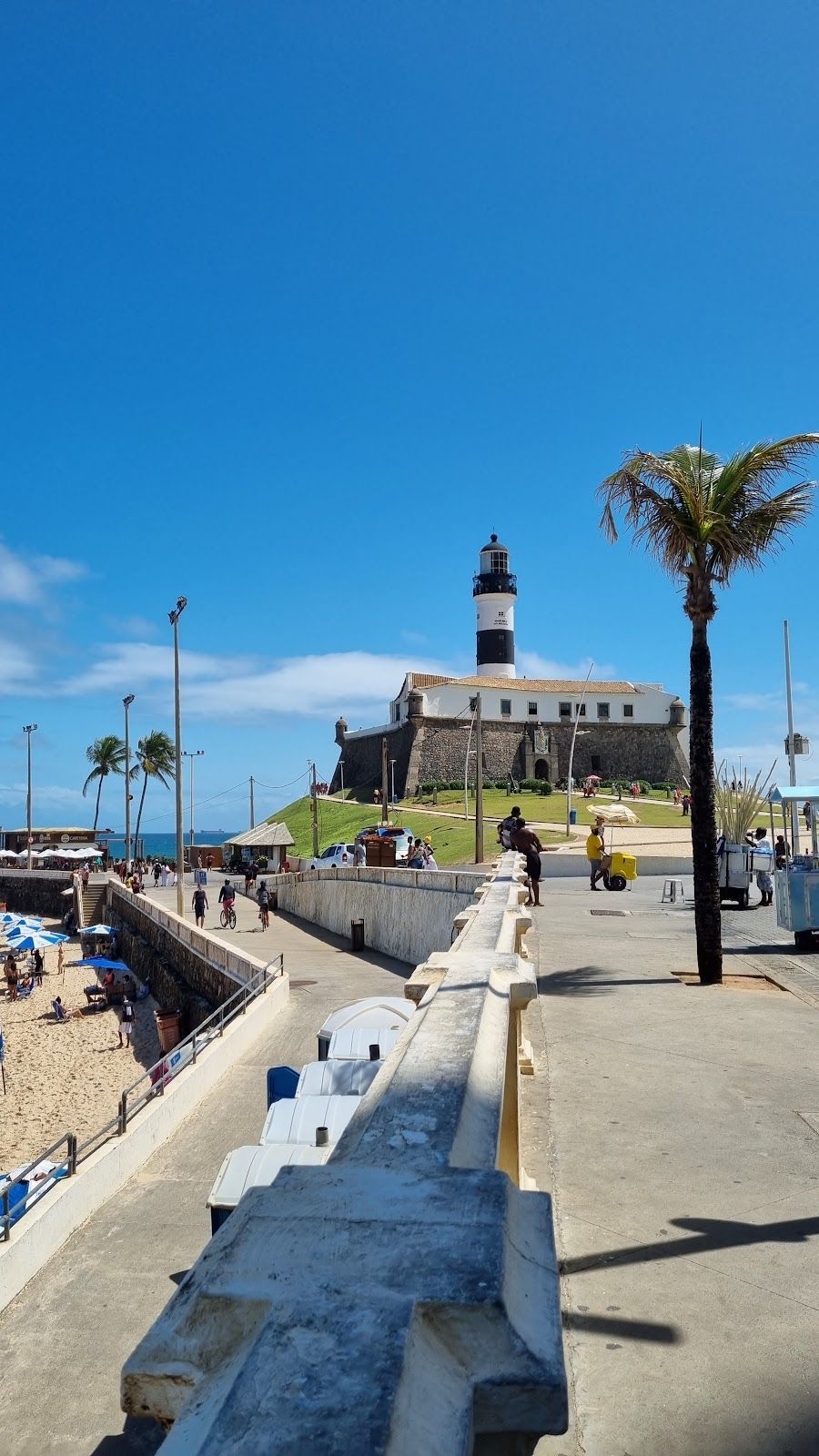 Vibrant beach with iconic lighthouse